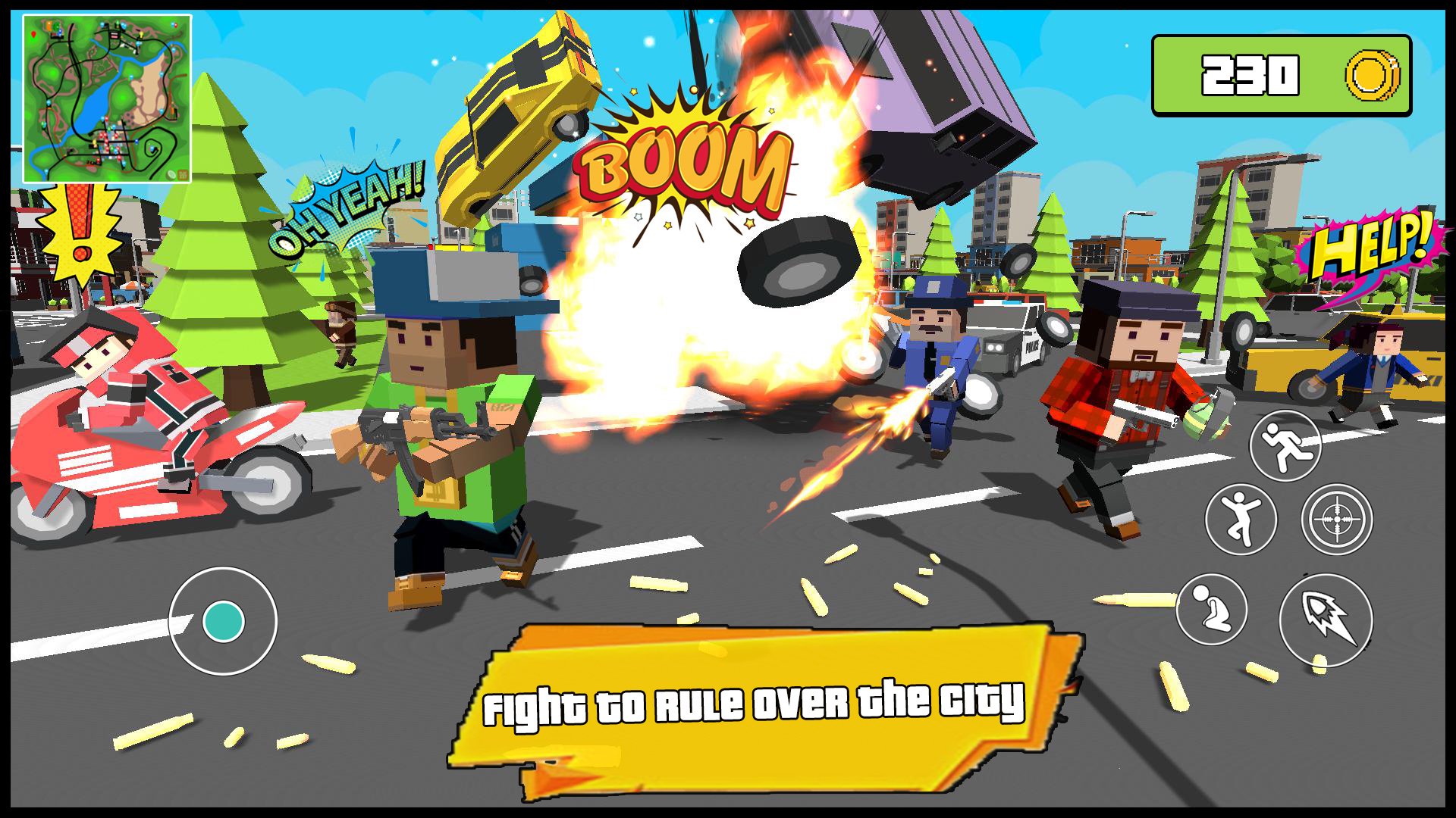 It’ll be a block war between your target and the citizens of your mini world. I can bet that this mob game will be your favourite best fighting game and shooting game of this year. In this shooting game battlefield you are the boss so be ready to be a super blocky block hero or a gangster of the city. The best feature of this mafia underworld and downtown mafia game is that it's a combo of the best Mafia games. Fight the state blocky police of Miami City in the arena. You have the best weapons to defeat them. You can drive a car or motorcycle through the map to travel faster. But be careful, if you break the rules, you will be persecuted by the state police