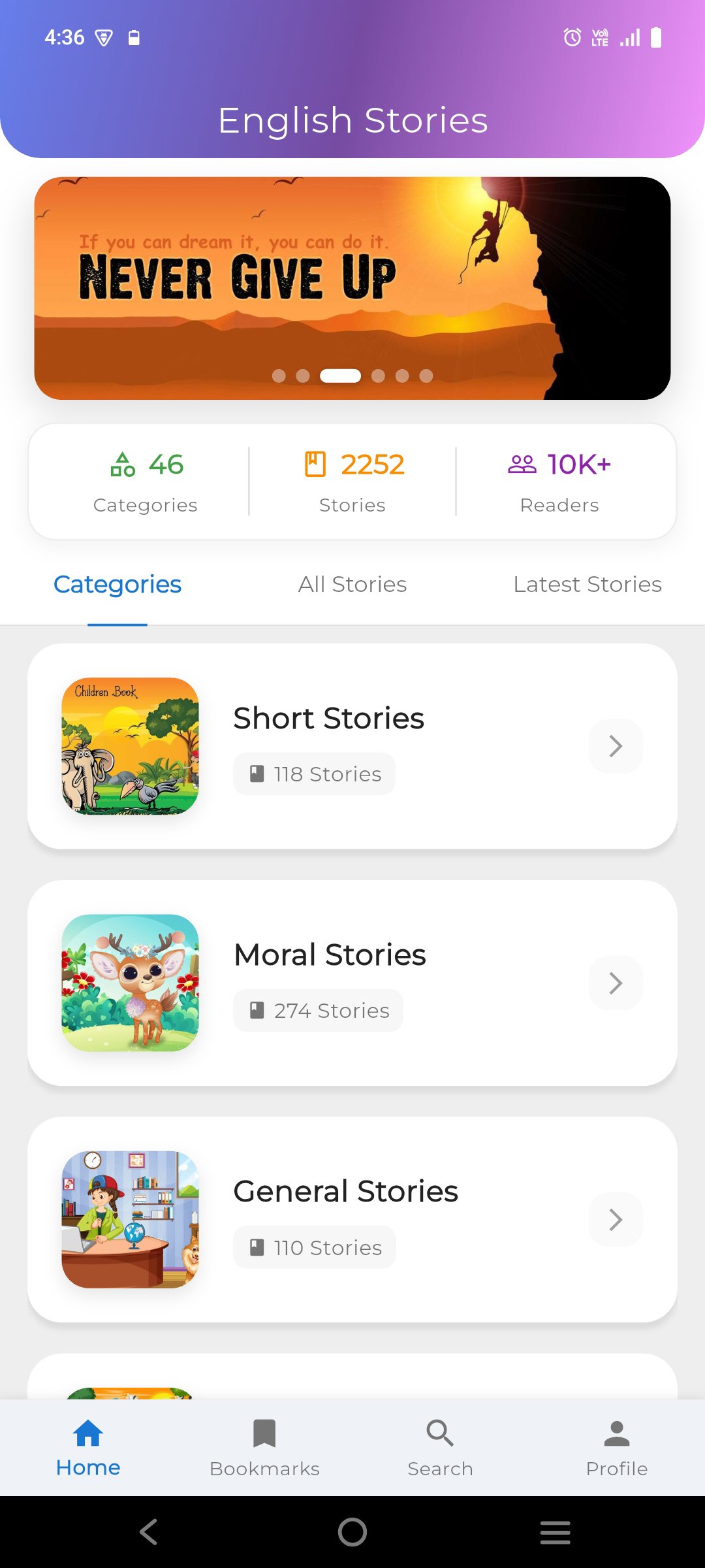 The English Stories App brings you a collection of fascinating tales written in easy-to-understand English. Perfect for learners and story lovers, this app helps you improve your English while enjoying meaningful and entertaining stories.
