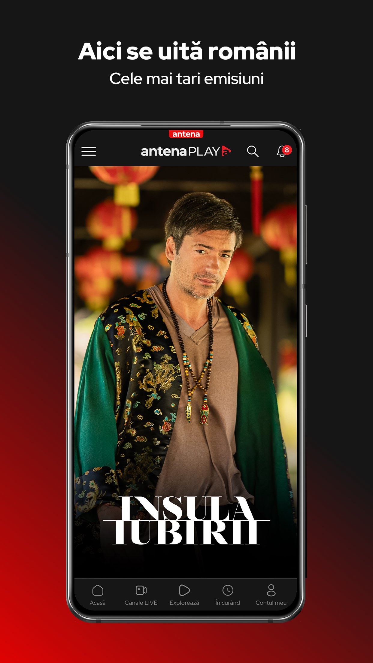 Antena Play is the best video entertainment platform in Romania, with a highly relevant content including five live TV channels (Antena 1, Antena Stars, Antena 3, Happy Channel and ZU TV), four customized channels, backstage videos and special events packages, exclusively for you.