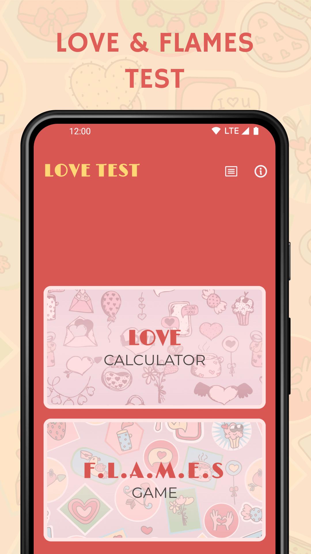 Are you in love with someone? Do you have a big crush on her or a crush on him? Love test - Flames calculator app is for you. It is a simple and easy-to-use love tester and flames game app.