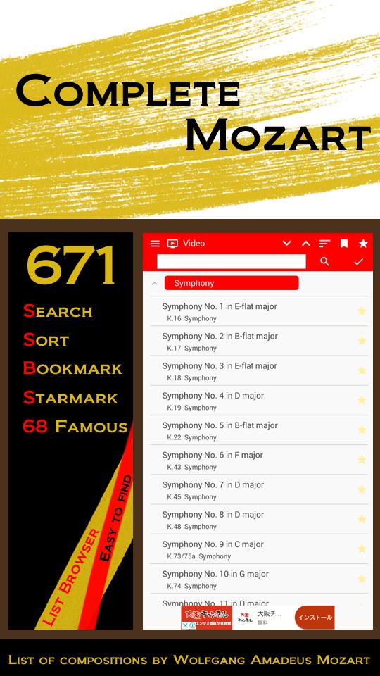 This application is a list type browser application that introduces 671 works by Mozart to you.