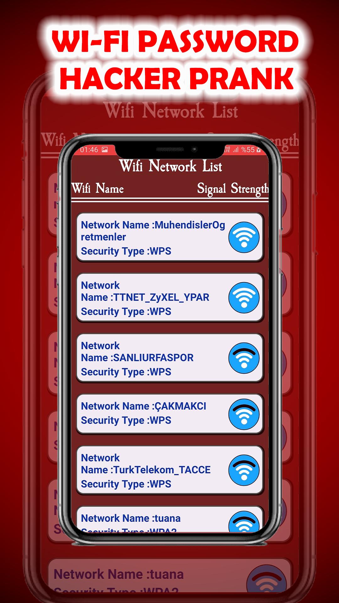 WIFI Password Hacker Prank is a prank app. It is WIFI hacking simulator and it only pretends to break into secured WIFI network. All passwords are randomly generated and are not a real passwords stolen from the router.