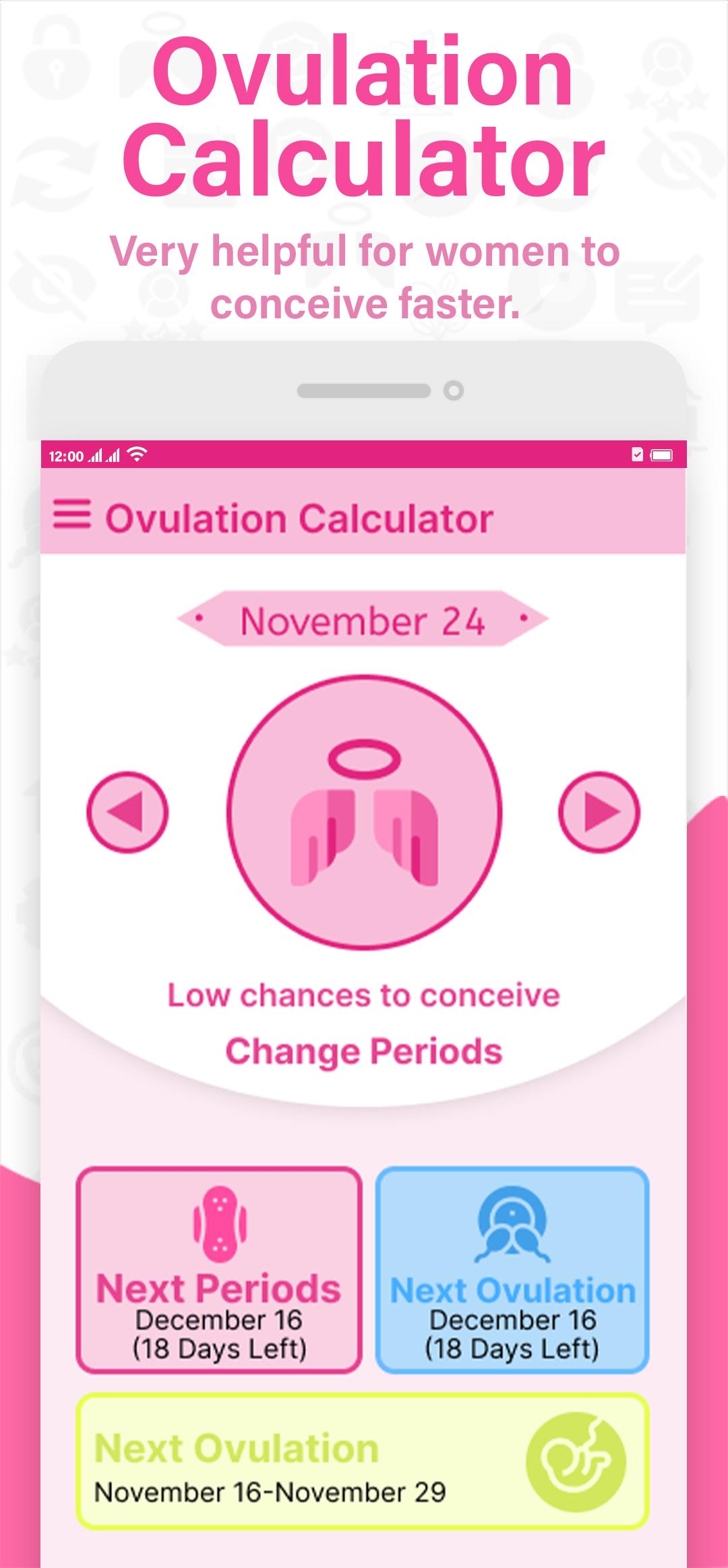 - Accurate predictions of period and calculate your chance of pregnancy every day