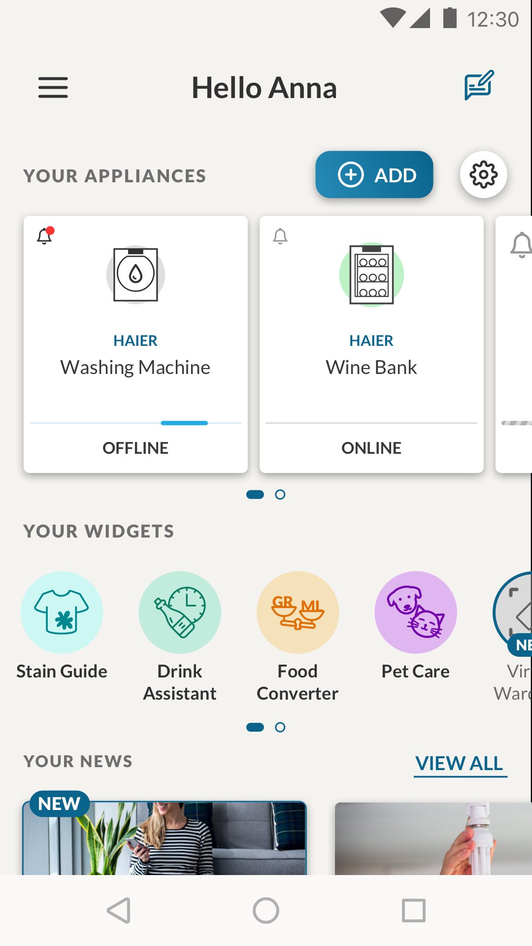 Revolutionise your home management thanks to Smart Widgets, available to all hOn users; use the Recipe Book to cook professional recipes, the Stain Guide to wash your favourite garments, the Drink Assistant to enjoy your wine at the right temperature and finally, for lovers of four-legged friends, the Pet Care widget will assist you in keeping all activities regarding your pets under control.