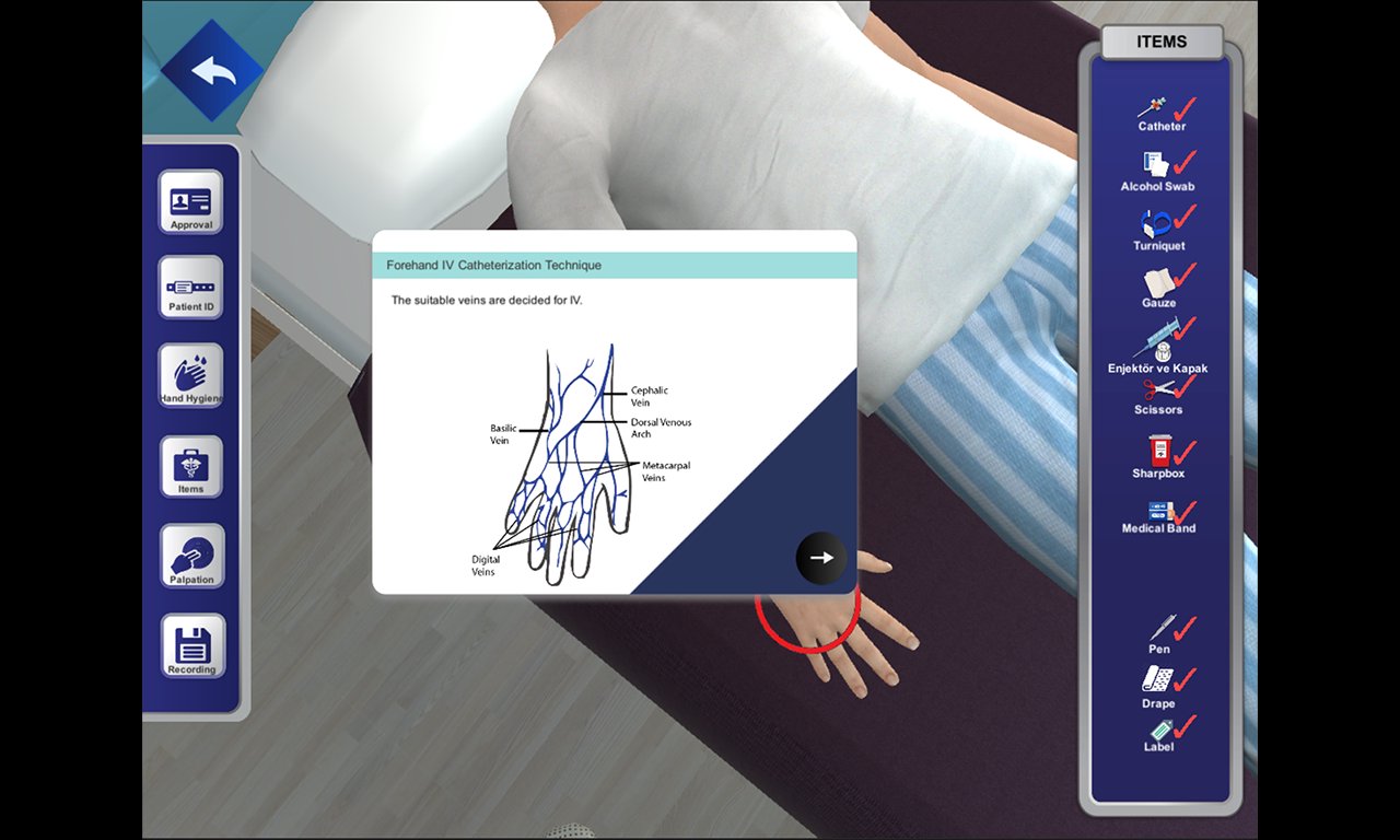 Forehand intravenous catheterization interactive serious game. Both step by step training as well as self test modules. Requires login credentials to use.