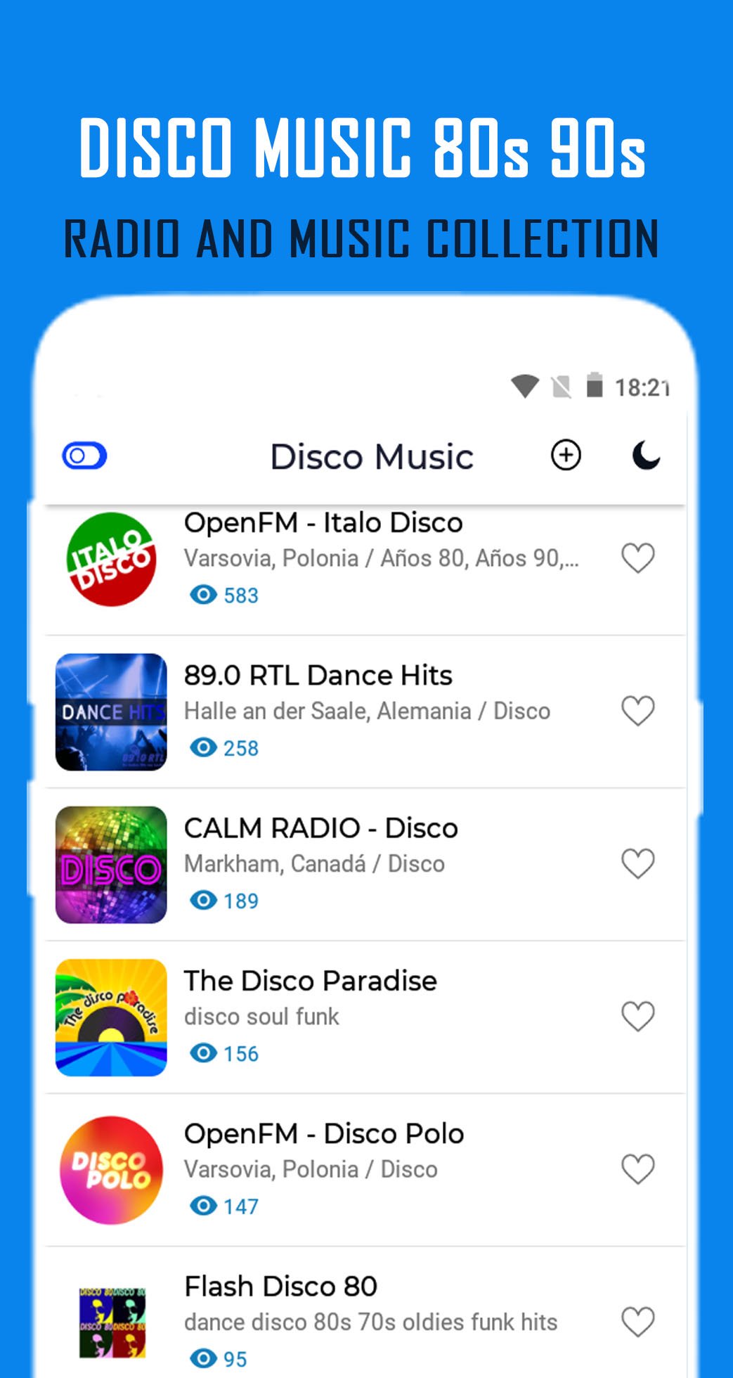 The following Disco Music 80s 90s app allows you to carry and enjoy a large number of varieties of free 70s and 80s disco music online.
