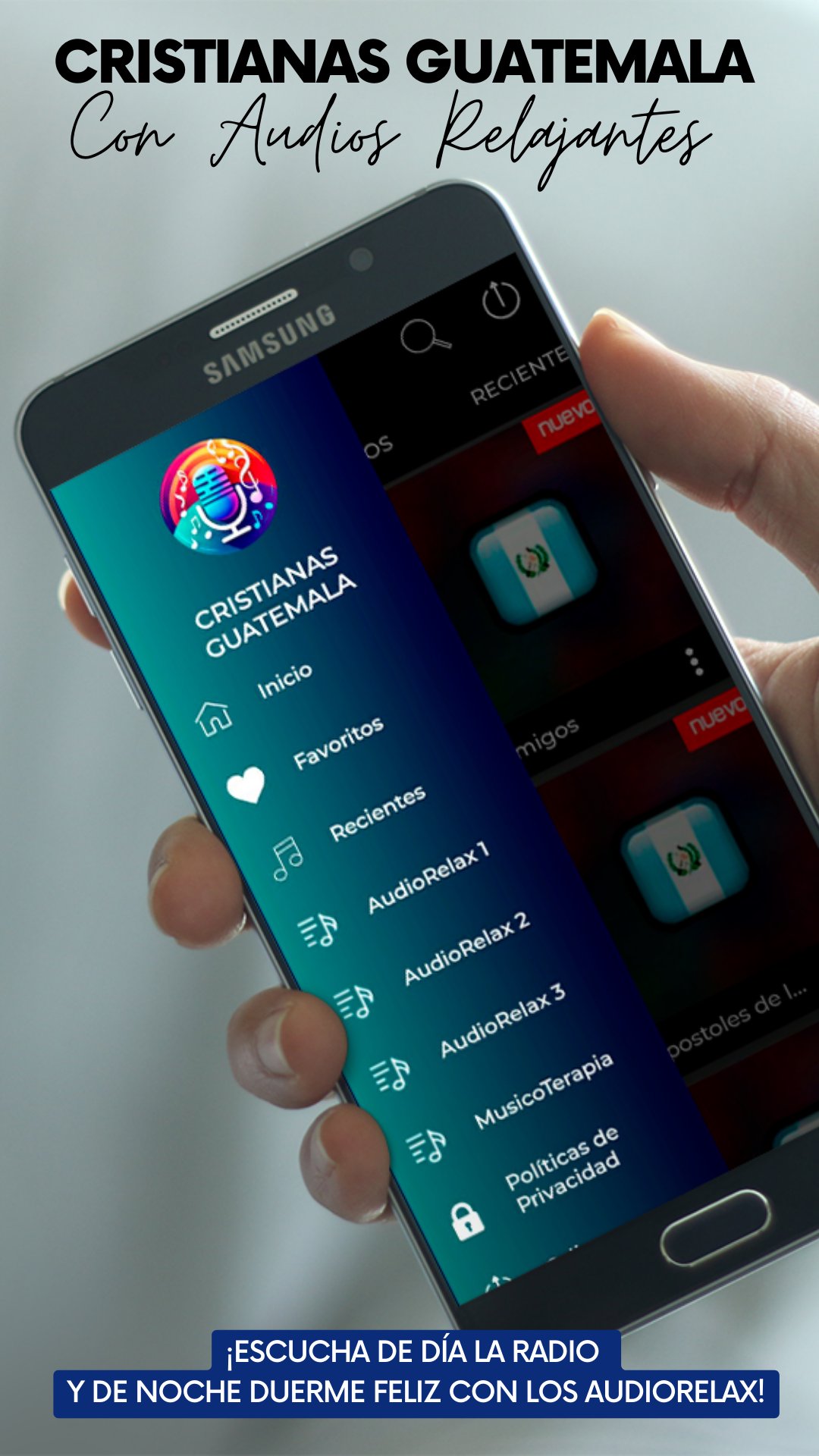 In this application, in addition to enjoying the main Christian stations in Guatemala, you have 4 new playlists of relaxing sounds of nature, water, rain, storms, forests, rivers, oceans, snow and effects that will help you relax and relieve stress, no just for you, but to put your baby to sleep, or calm your pets. There is also a playlist of ASMR audios and White Sounds or White Noise.