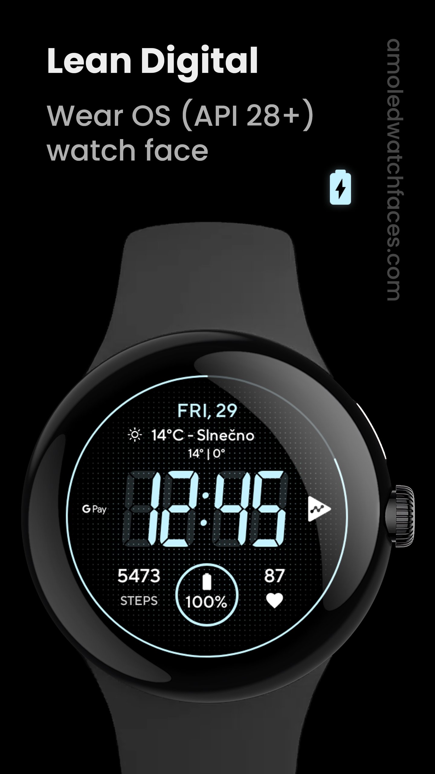 Lean Digital Watch Face, proveniente del desarrollador amoledwatchfaces™, se ejecuta en el sistema Android en el pasado.