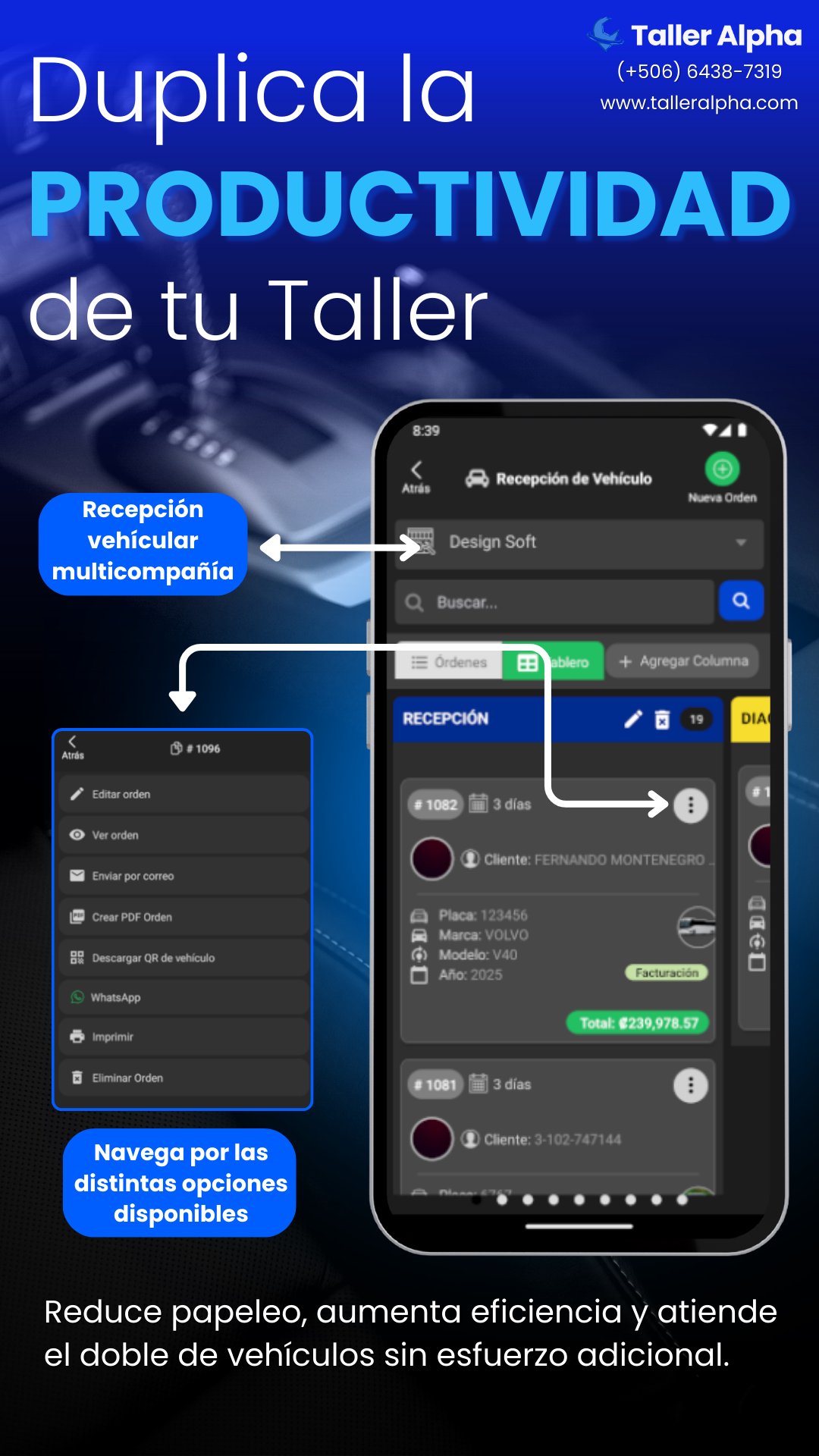With TallerAlpha your client can be check your vehicle status from any smartphone or tablet, TallerAlpha is an ERP that has a range of solutions for the entire Automotive Workshops market to do the following: