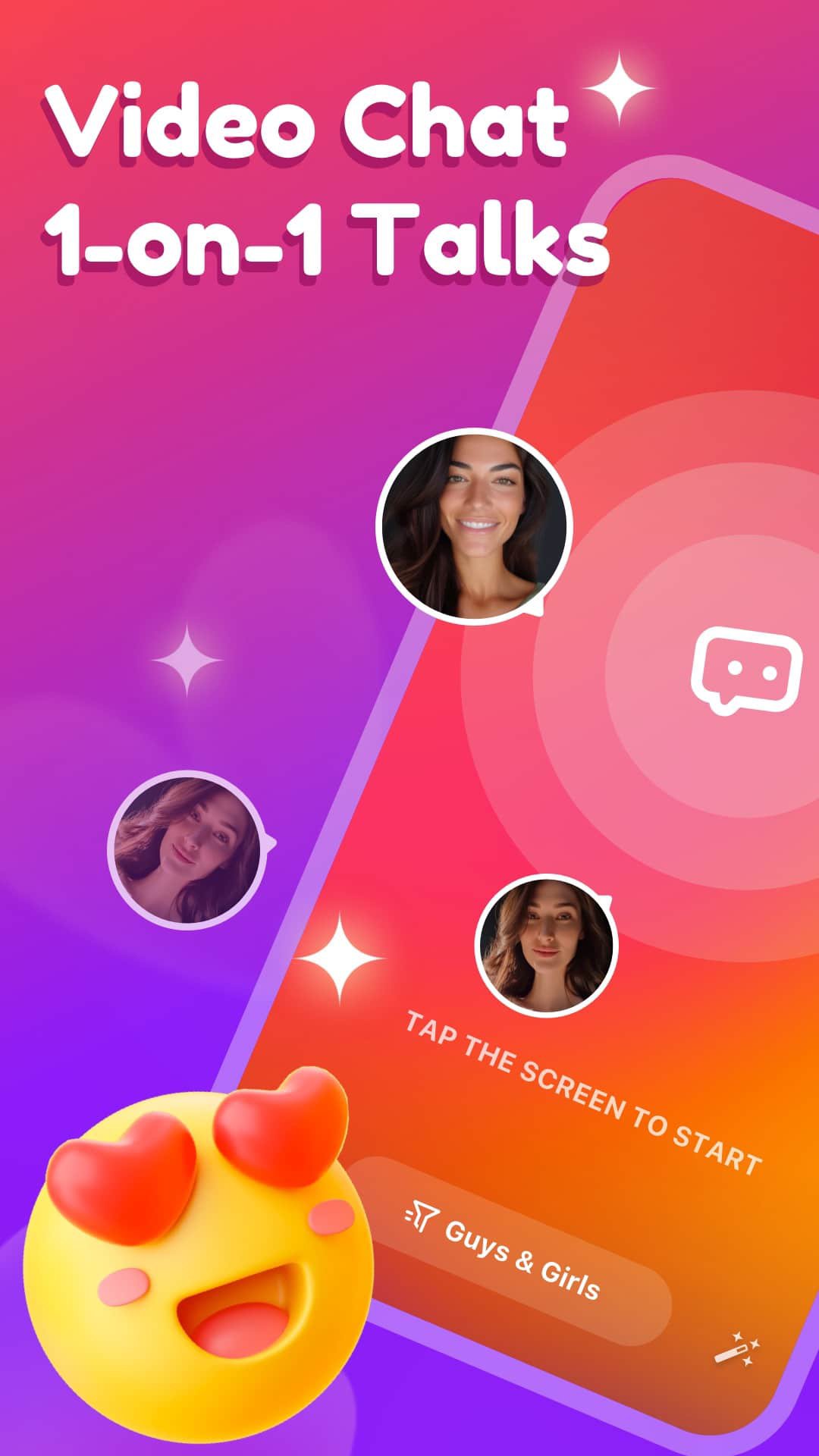 Don’t be shy! Showcase the best you! Get to know new people in the simplest way. Tap on the screen to video chat with friends from different parts of the world.