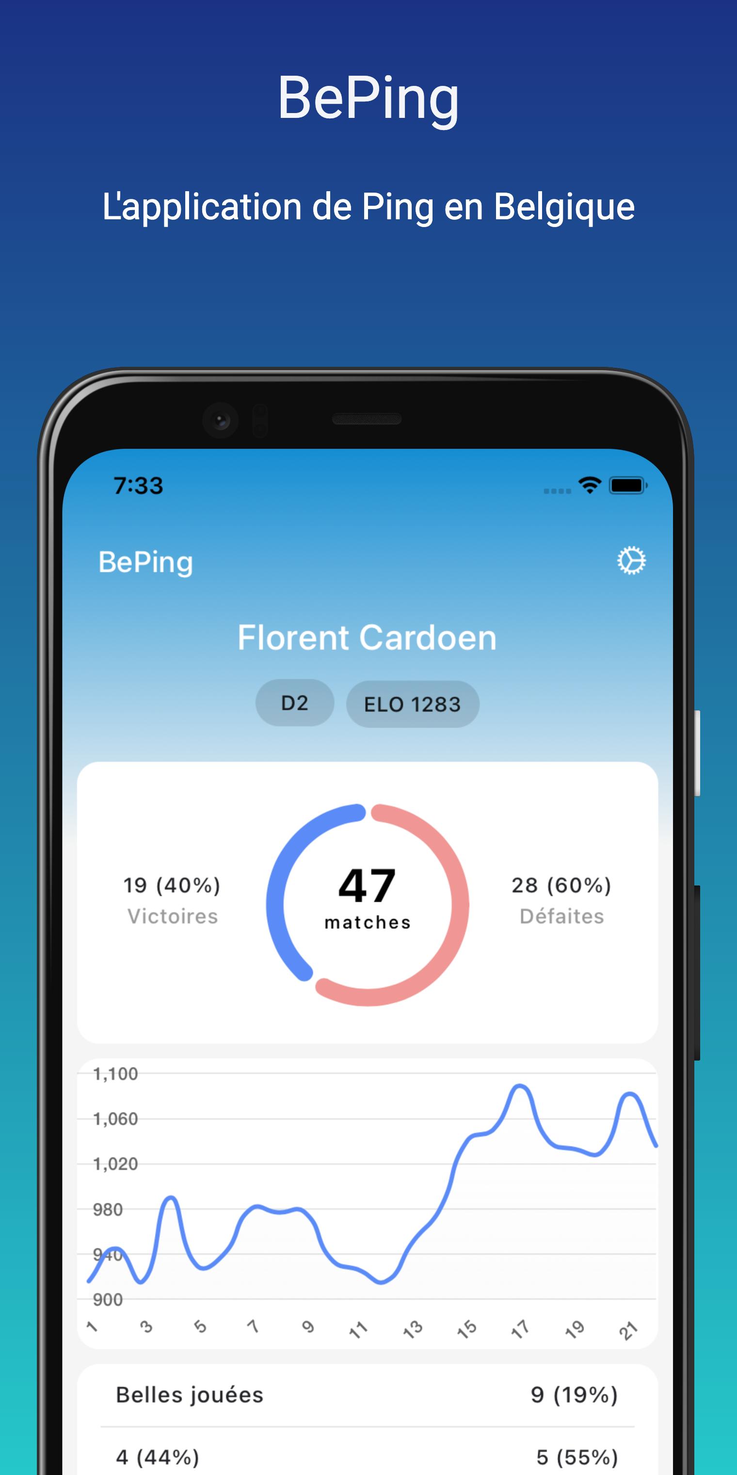 BePing allows you to obtain information quickly related to your matches or your table tennis club in Belgium.