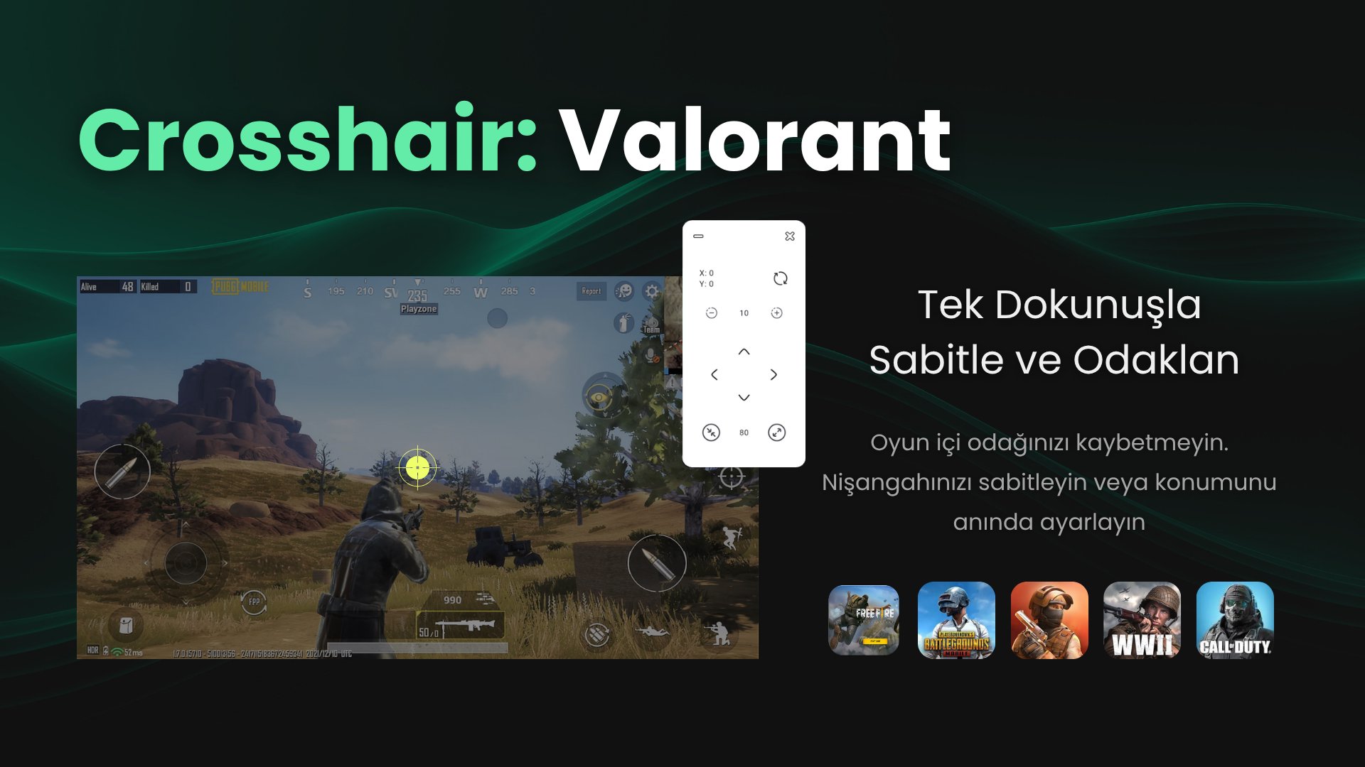 Crosshair works with PUBG Mobile, COD Mobile, Free Fire, Fortnite, Valorant Mobile and many more games thanks to its on-screen fixed crosshair system.