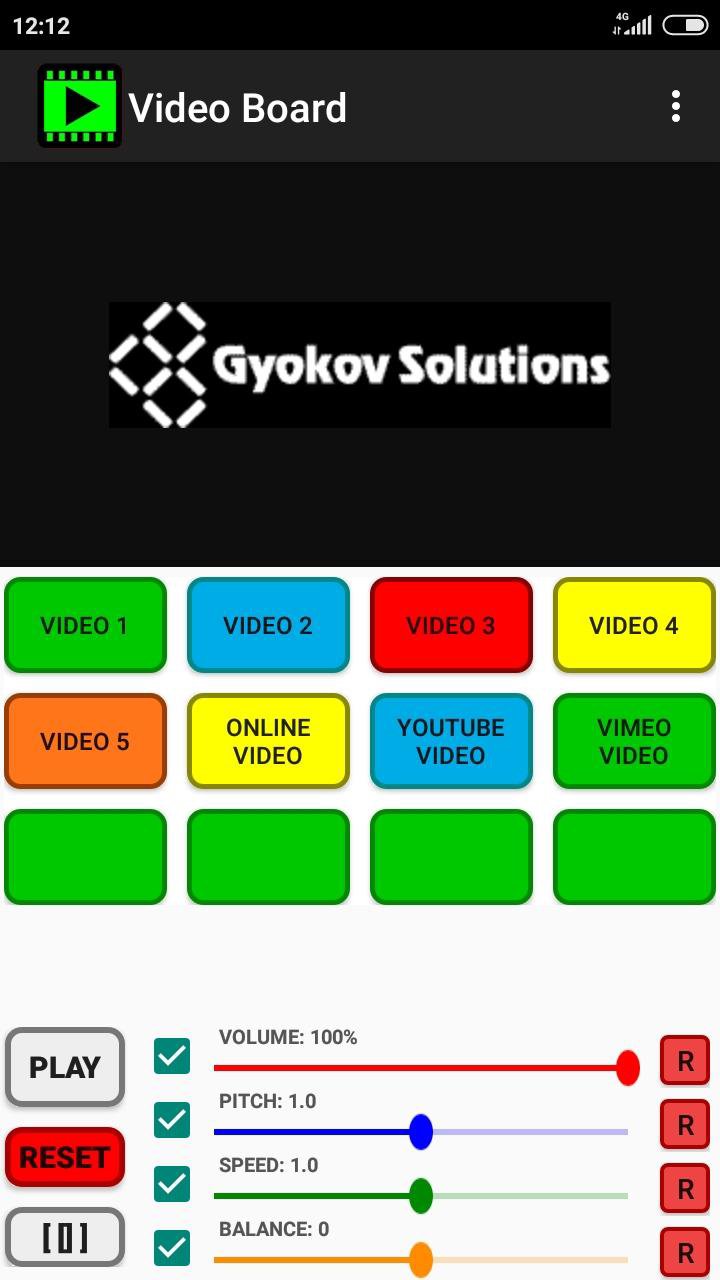You can create your own unique video board. There are different types of buttons for different playing options and you can control volume, speed, pitch and balance. Also file cropping and fade in/out is possible.
