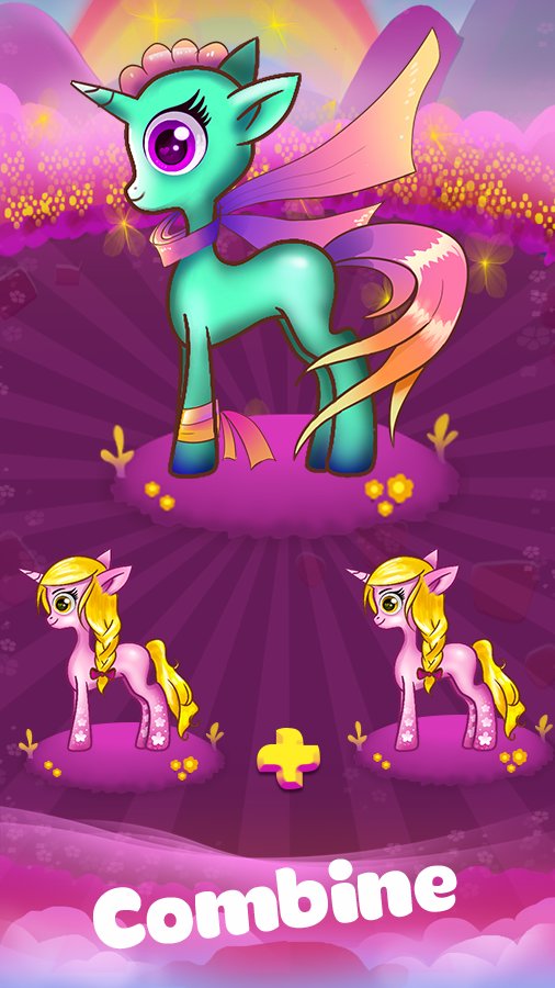 * Mesclar pôneis unicórnios para subir de nível e fazer seu pônei crescer
