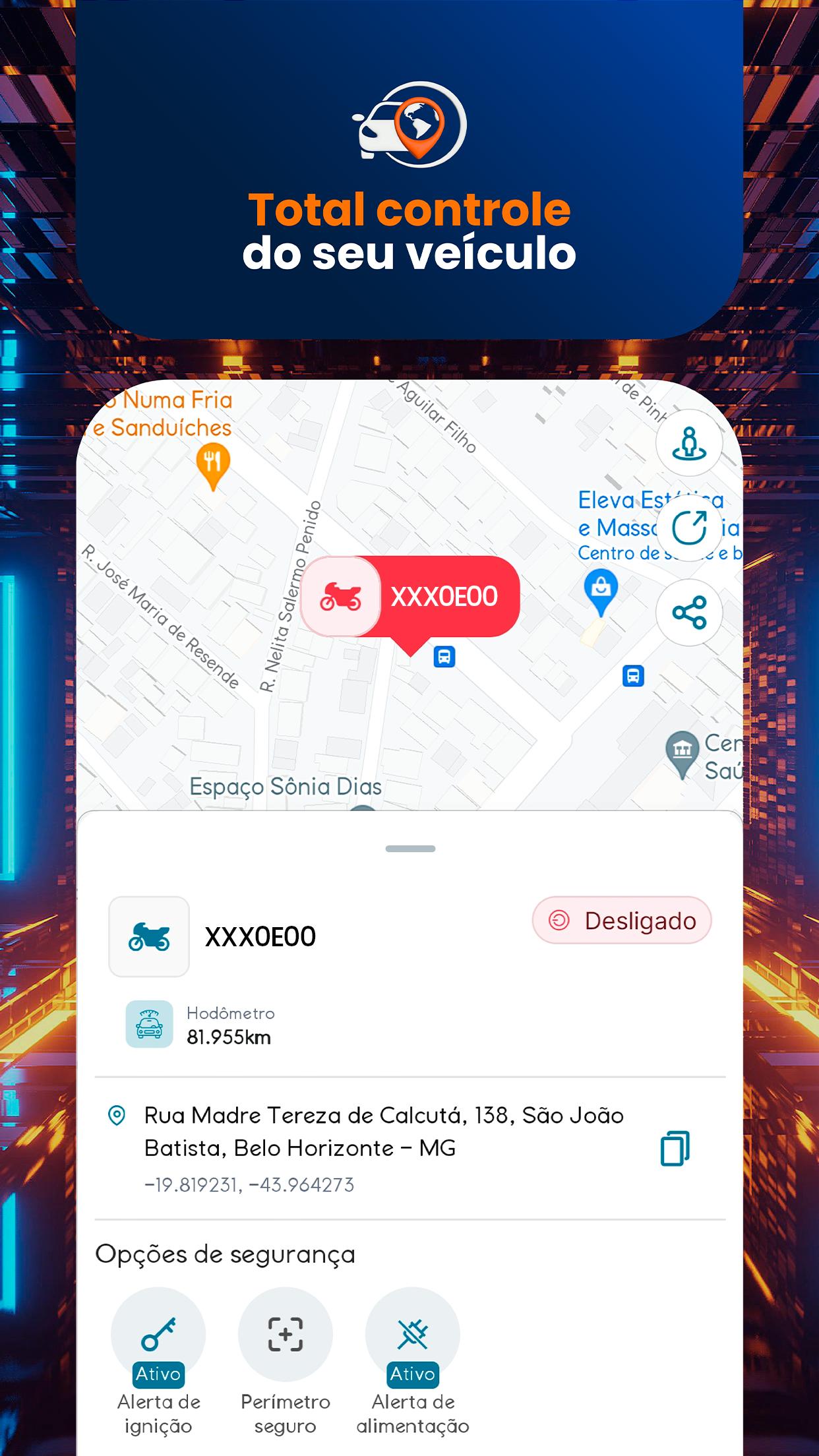 Você poderá ver aonde estão todos os seu veículos no mapa, e poderá consulta o trajeto diário, e visualizar todos os locais que seu veículo esteve no dia.
