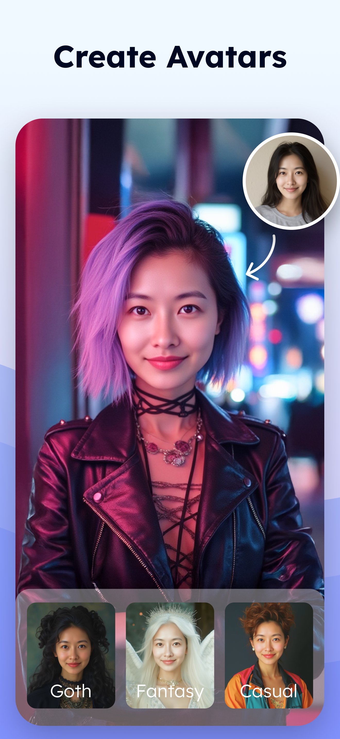 Descubra possibilidades infinitas com nosso poderoso criador de avatar e gerador de imagem com inteligencia artificial. Transforme-se em desenho, faça imagens animadas ou animação com efeito incrível. Crie avatar personalizado com ia foto e inteligencia artificial fotos, explore estilos de cartoon avatar, anime e animar rosto. Use nosso gerador de foto ia e gerador de foto para criar imagem única, desde cabelo até roupas. O criador e editor de avatar com inteligência artificial e efeitos de ai oferece tudo para gerar retratos profissionais ou avatares criativos que refletem você perfeitamente.