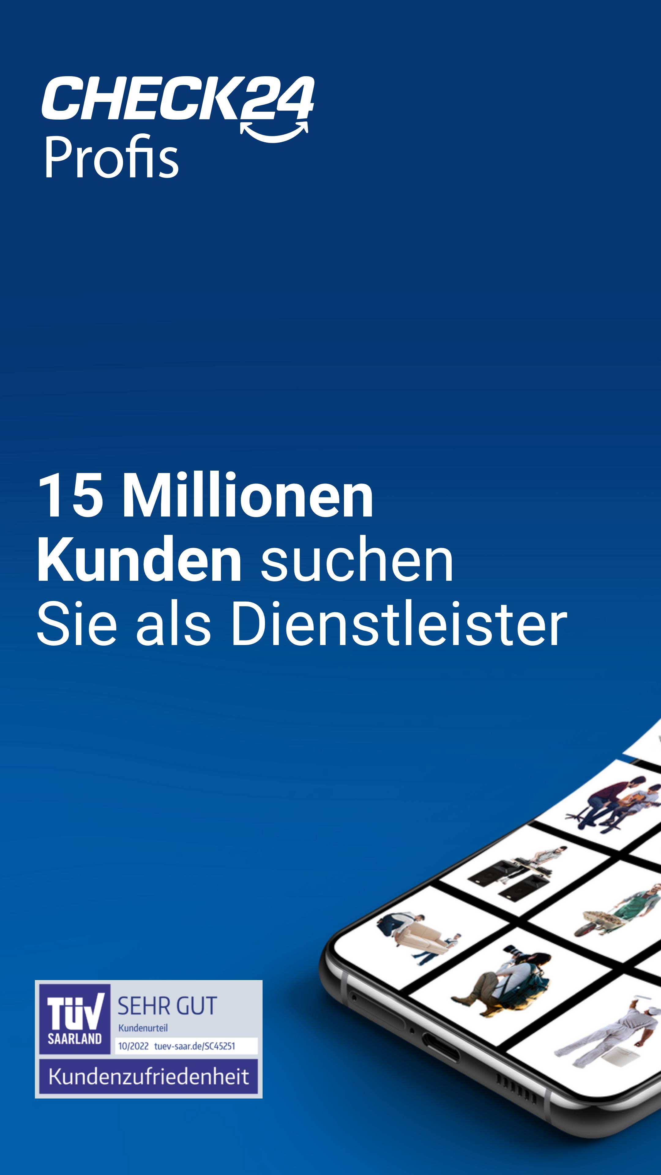 Você é um artesão? Empresa de mudanças? Treinador? Professor? DJ? Prestador de serviços? Profissional? Com o aplicativo CHECK24 Profis, você pode facilmente adquirir novos clientes em qualquer lugar e gerenciar seus pedidos e pagamentos.