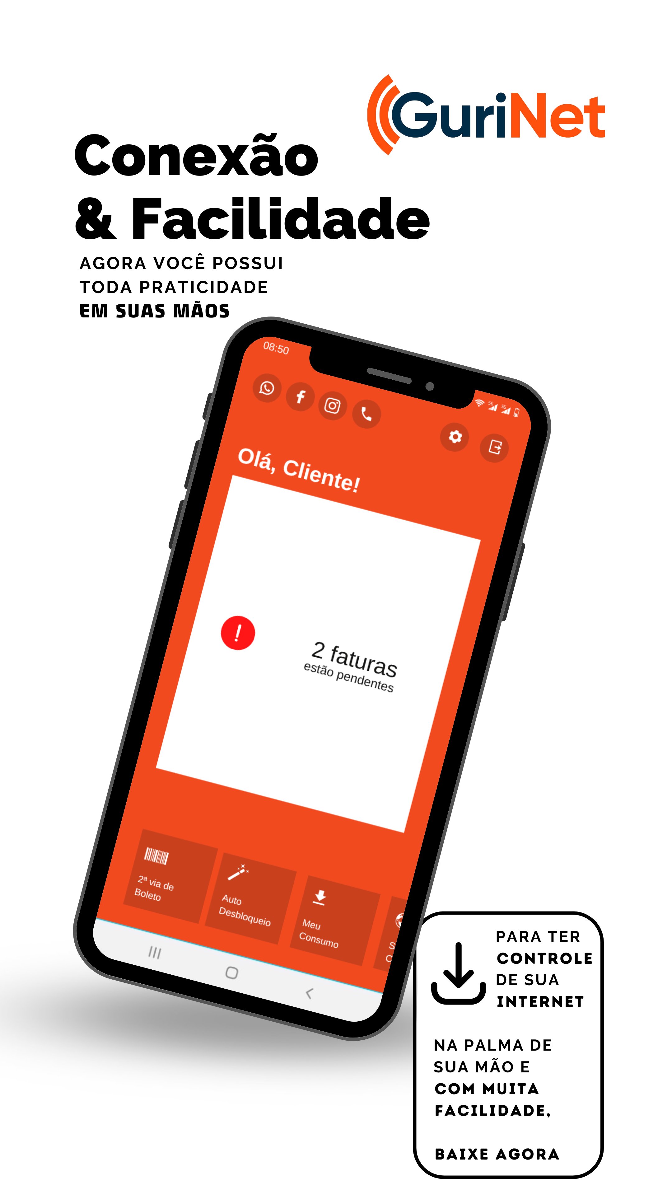 Aplicativo para clientes da Gurinet, um jeito mais fácil de gerenciar seu plano de internet.