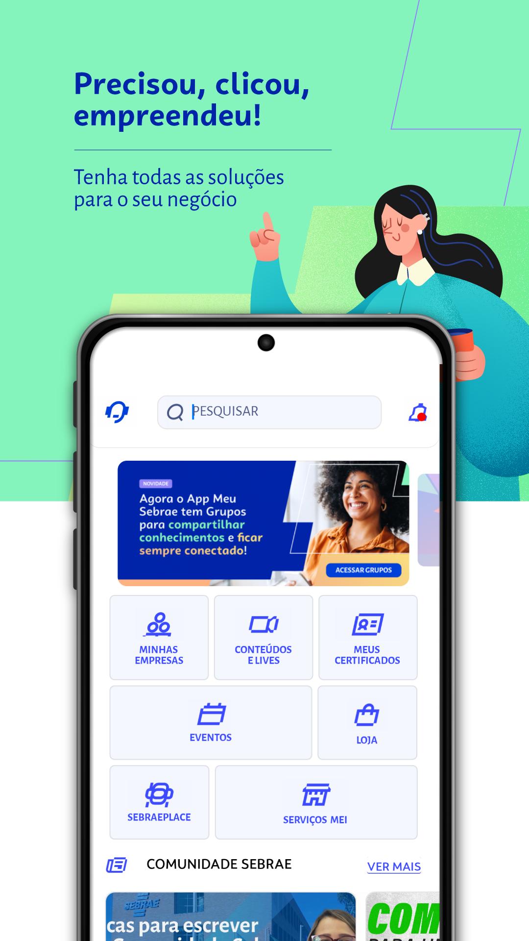 Acesso aos conteúdos da Comunidade Digital do Sebrae, com milhares de conteúdos nas temáticas MEI, Novos Negócios, Inovação, Finanças, Tributos, Tech, Agro, Marketing digital, Construtech, Varejo e Muito Mais!