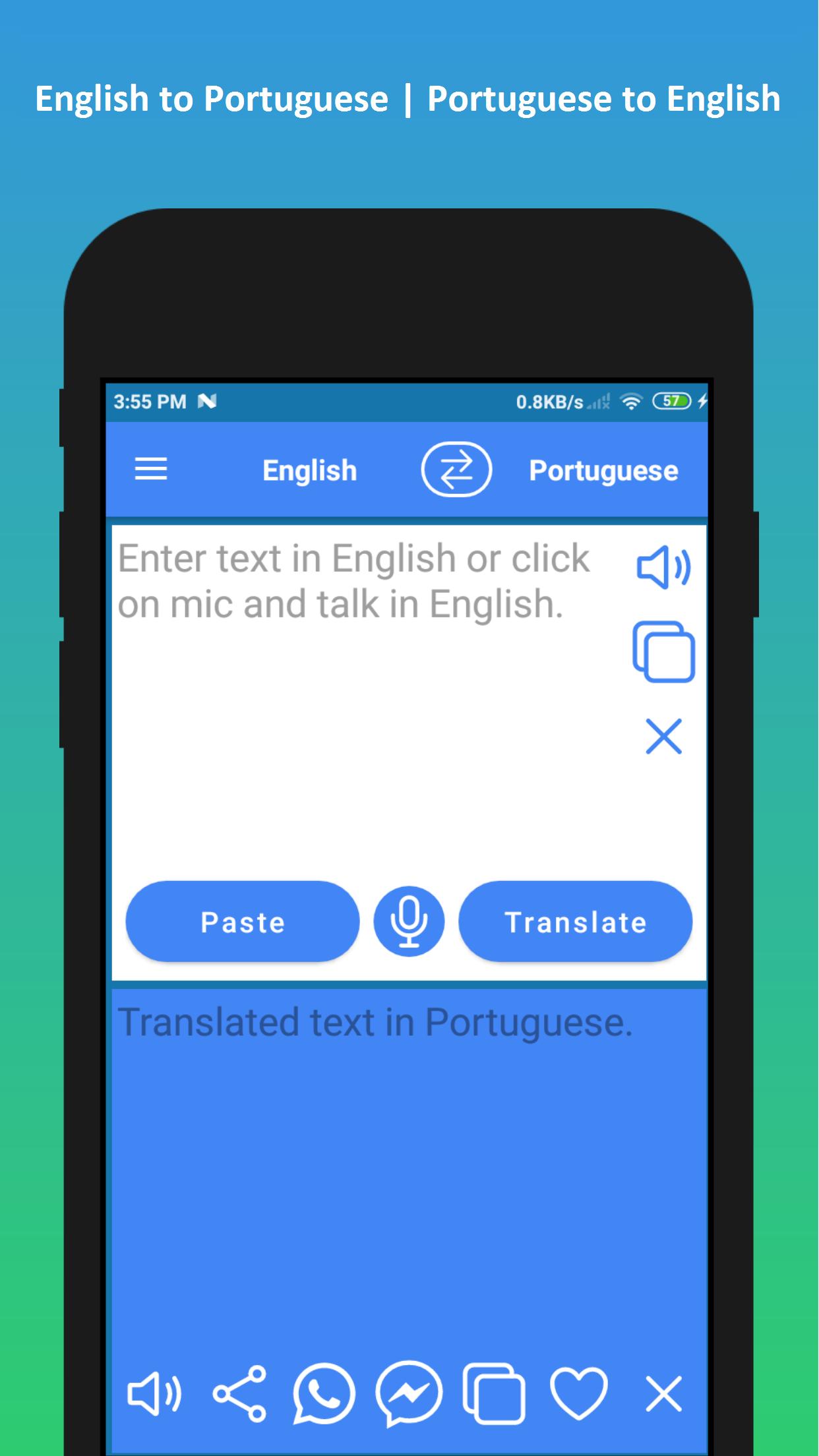 ✓ Traduza facilmente texto em inglês para português usando nosso aplicativo Tradutor de inglês para português gratuito. Você também pode realizar a tradução de português para inglês.