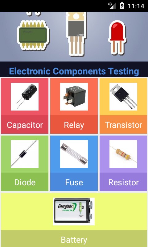 - Nesta aplicação, você vai aprender como fazer o teste de diodo, fusível, capacitor, resistor, transistor, relé e também um bônus: bateria.