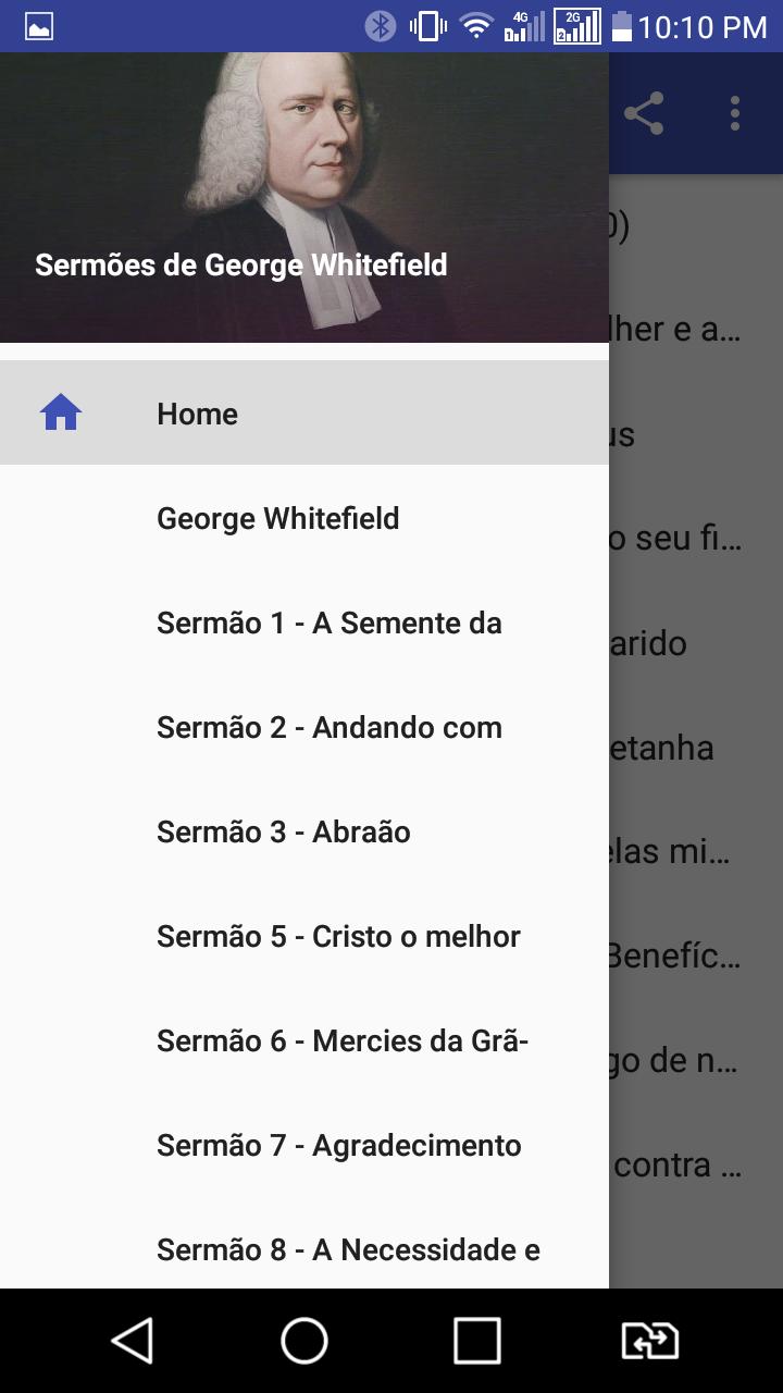 Sermões de George Whitefield, vindo do desenvolvedor Pr. Welfany Nolasco Rodrigues, está rodando no sistema Android no passado.