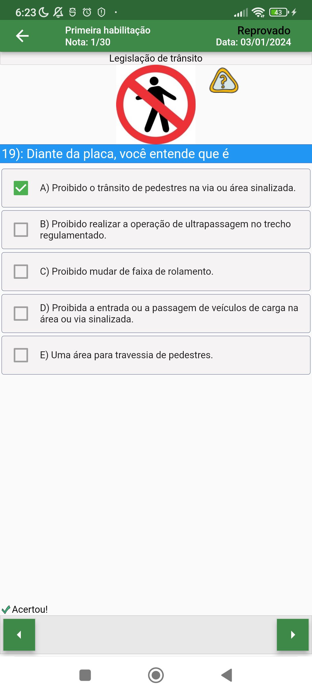 Simulado CNH, vindo do desenvolvedor LinaTec, está rodando no sistema Android no passado.