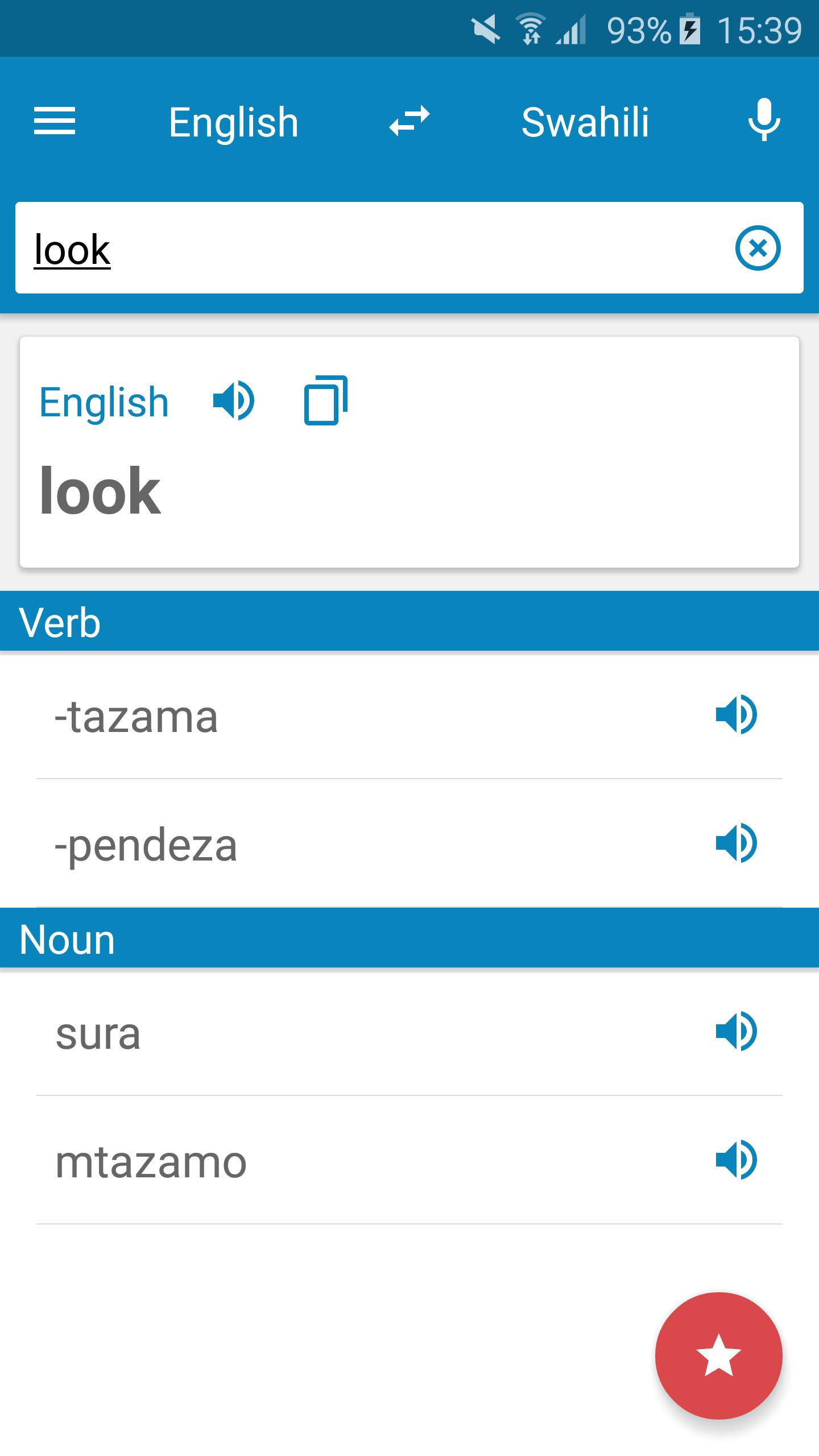 Swahili-English Dictionary, vindo do desenvolvedor AllDict, está rodando no sistema Android no passado.