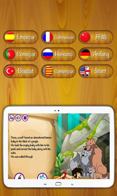 É um aplicativo de coleção clássica de historinhas, e sem dúvida, o melhor livro interativo com áudios de leitura de histórias curtas, jogos educativos com páginas para colorir e quebra-cabeças, perfeito para uso tablet por crianças no ensino pré-escolar ou crianças que vão à escola primária. As crianças podem divertir com esta famosa história O livro da Selva.