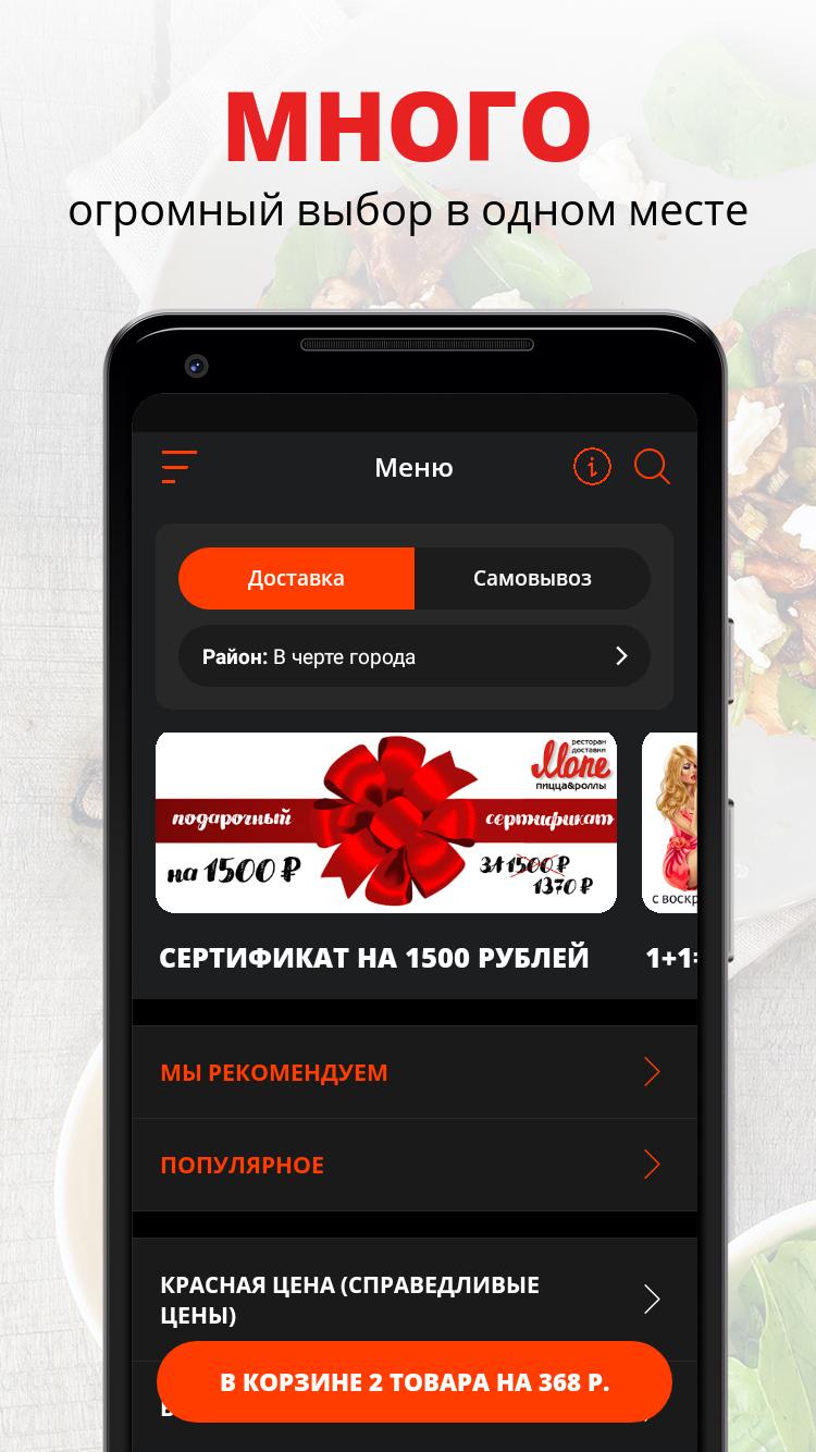 Use o aplicativo conveniente para pedir comida no restaurante de entrega Mone. Entrega rápida de sushi, pãezinhos, pizza em Balakovo!