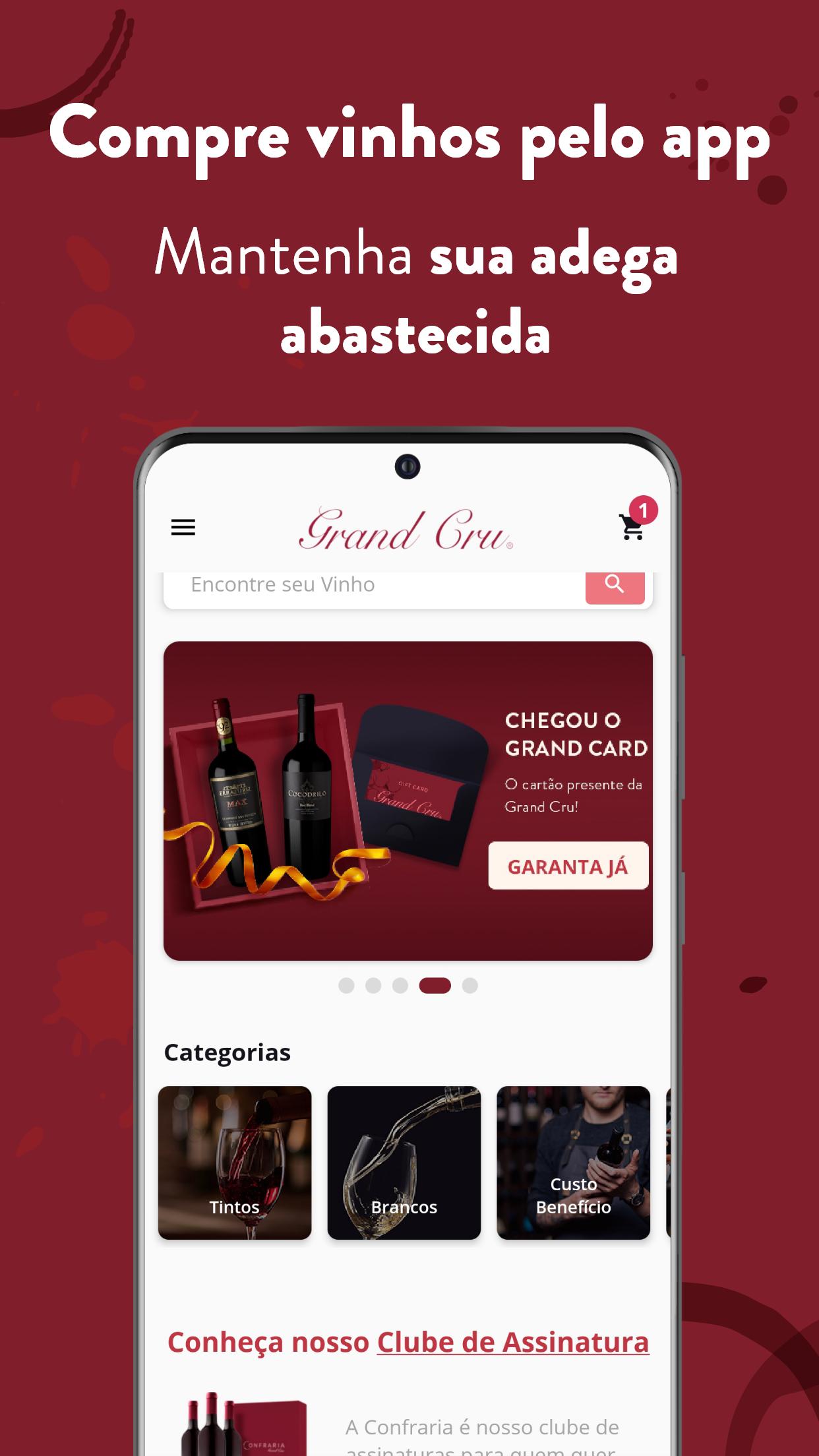 Com o app Grand Cru você compra vinhos e espumantes direto pelo celular e ainda pode receber vinhos selecionados todo mês com o nosso Clube de Assinatura!