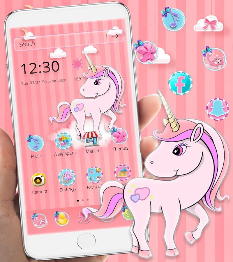 Papel de parede do unicórnio de desenhos animados irá personalizar o tema do telefone girlroid pink girl