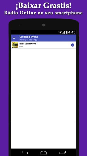 Radio Vale FM 99.9 Juazeiro Do Norte - Radio Online é uma aplicação Android com estas incríveis funções: