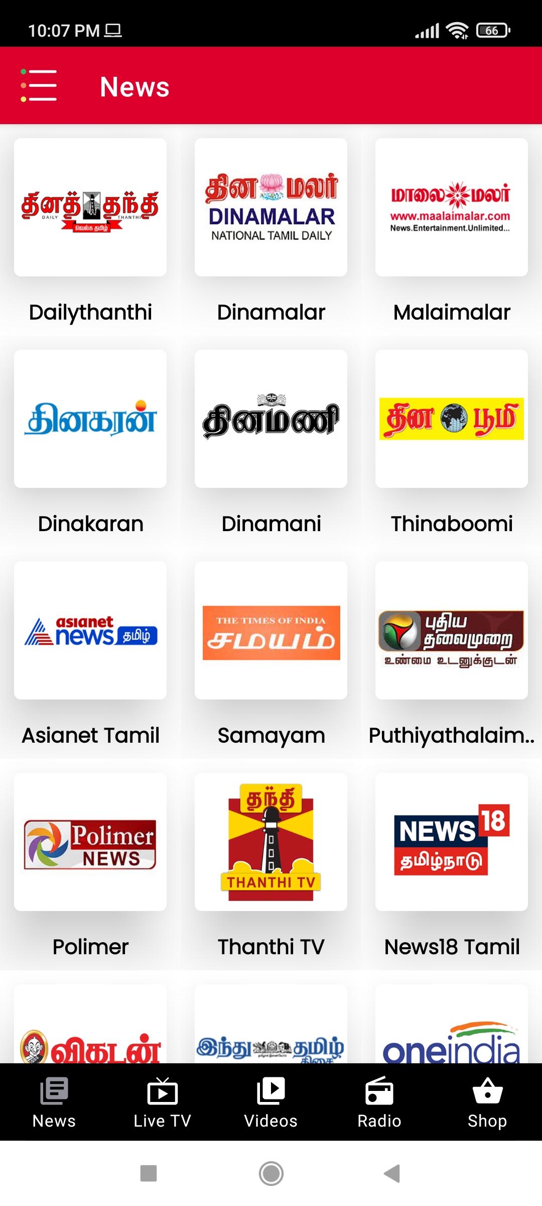 Its all in one Tamil News app with Live TV News, Video News, Tamil FM Radio and all in one shopping app.