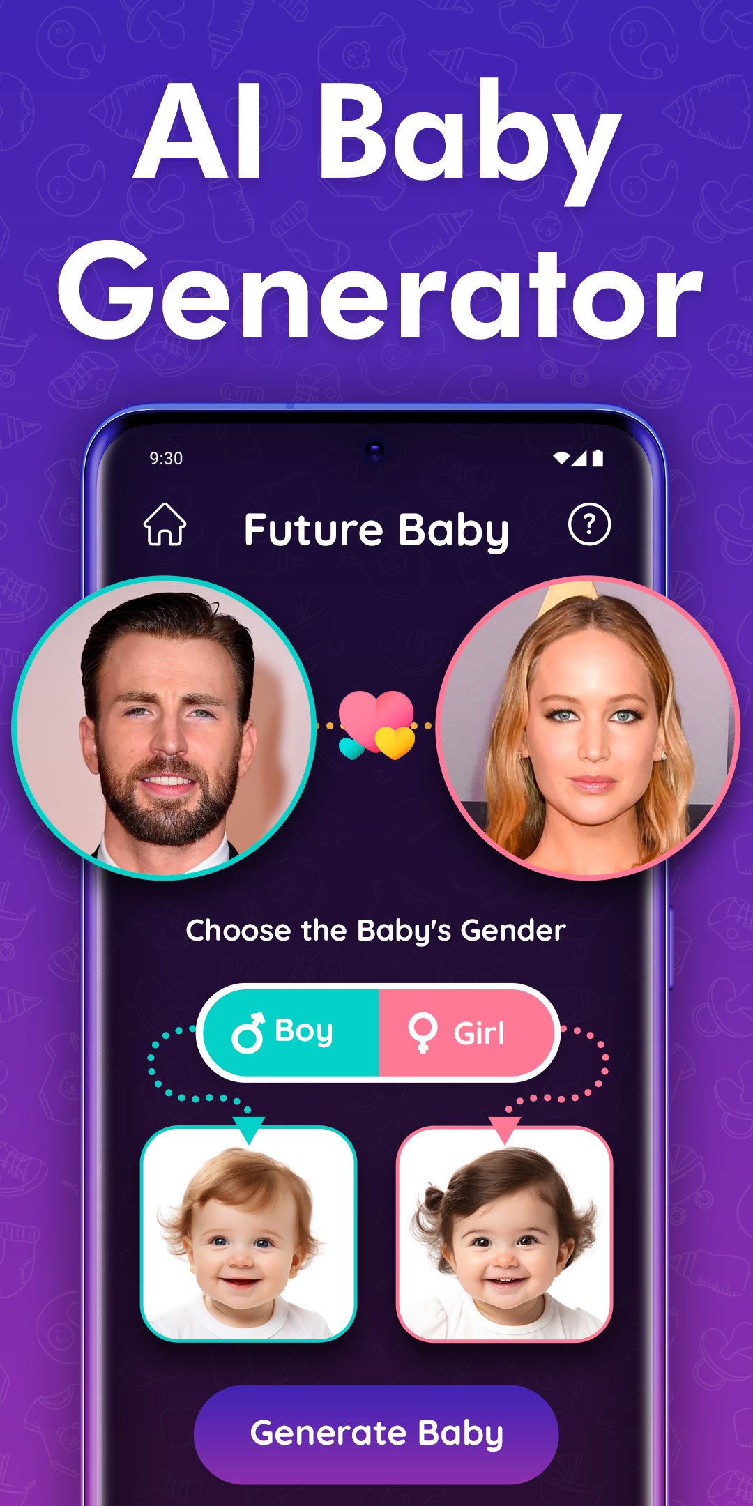 Este aplicativo Gerador de Rosto de Bebê com IA utiliza tecnologias avançadas de algoritmos de inteligência artificial (IA) para analisar os rostos da mamãe e do papai e gerar uma imagem do seu bebê. Você pode ver o rosto do bebê com este aplicativo. Nosso aplicativo para criação de bebês gera resultados precisos, ideal para quem quer saber Como Será Meu Bebê.