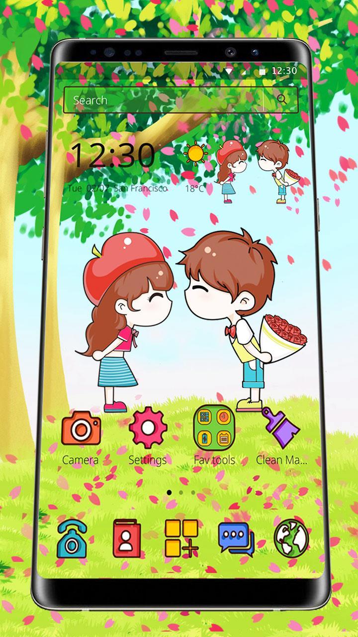Aplique o tema Casal dos desenhos animados para curtir o papel de parede e os pacotes de ícones GRÁTIS! Deixe o seu telefone elegante!