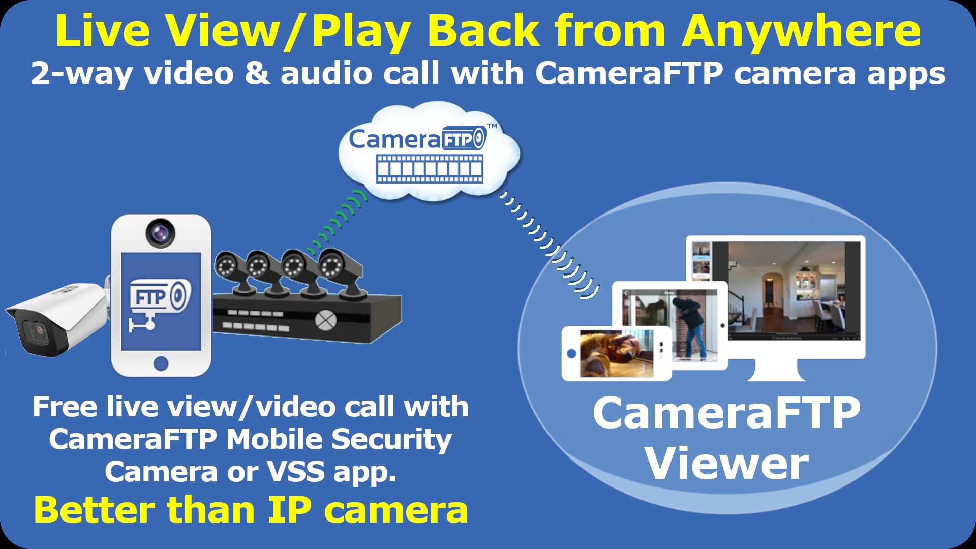 CameraFTP oferece um serviço revolucionário de segurança e monitoramento para residências e empresas. A partir de apenas US $1,50/mês, ele oferece muito mais e melhores recursos do que os serviços de segurança tradicionais. É extremamente fácil de configurar, suporta a maioria das câmeras IP e você pode até usar uma webcam ou smartphone /tablet como câmera de segurança. Suas imagens são armazenadas no data center seguro do CameraFTP, que não pode ser destruído por intrusos.