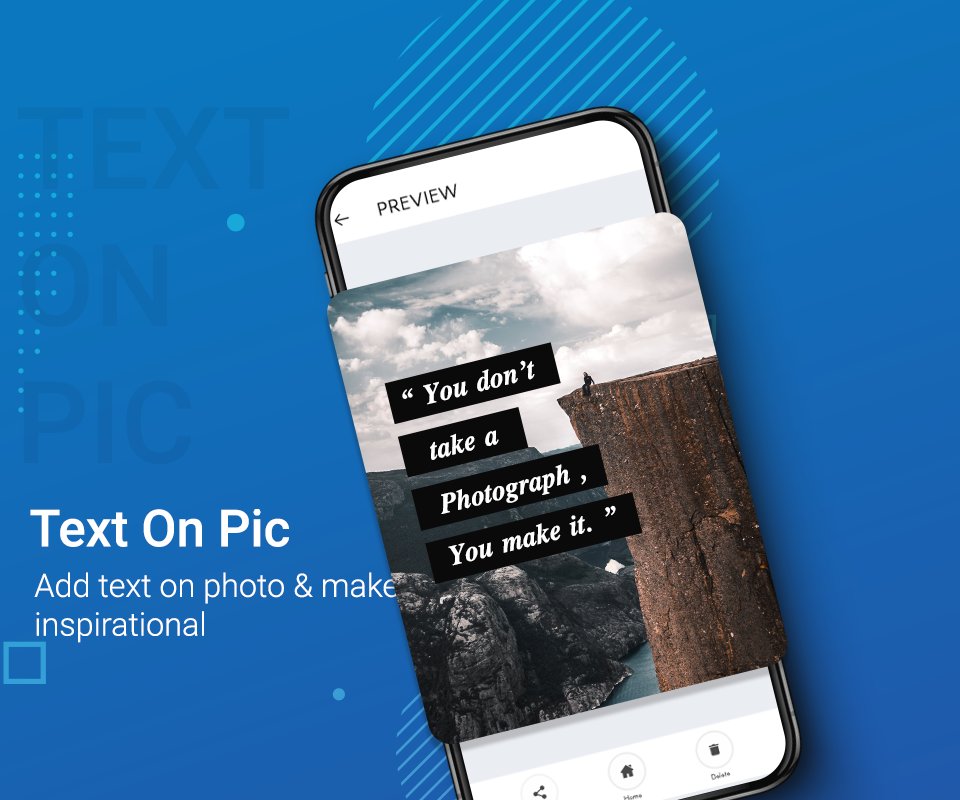 Crie a melhor essência de mensagens de texto escrevendo um texto atraente na foto que você selecionar.