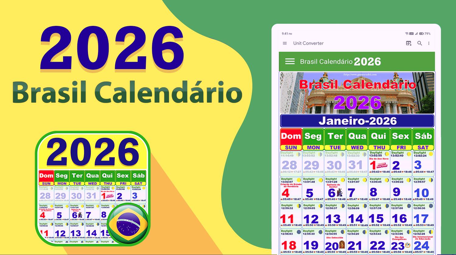 Características: Brasil Calendário 2026