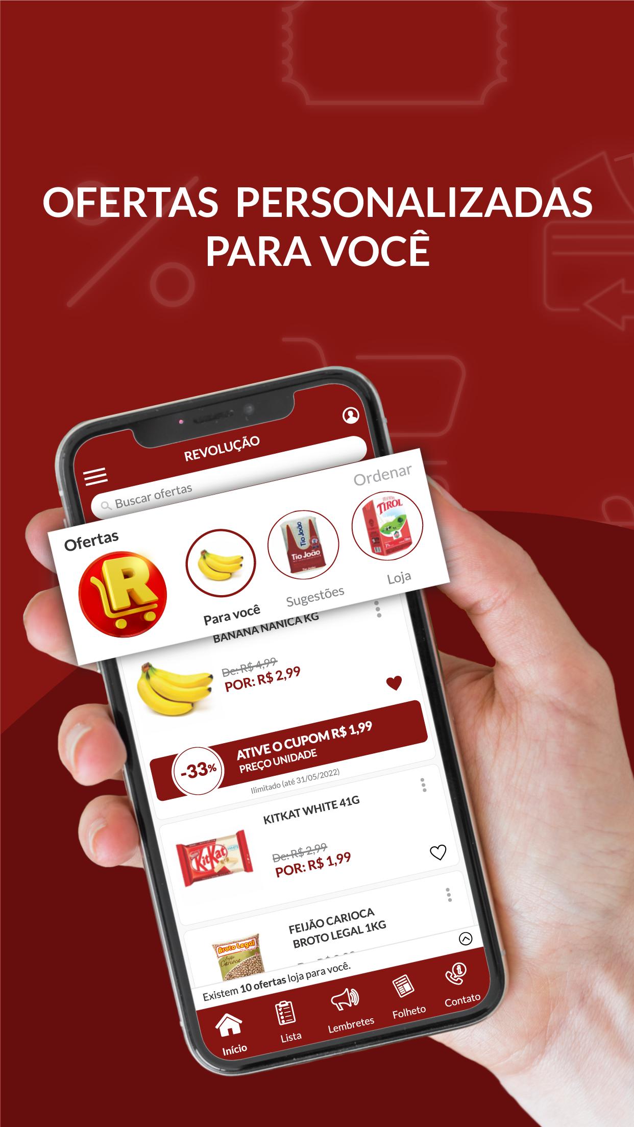 Comece a aproveitar tudo isso, fazendo o download do aplicativo Supermercados Revolução.