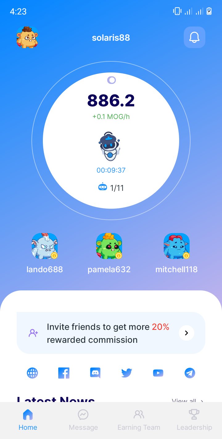 Mog Network is an interactive game on social networking platforms. The app helps to allocate rewards to the pioneers and to support the project. You can interact regularly with the app to increase your MOG balance.