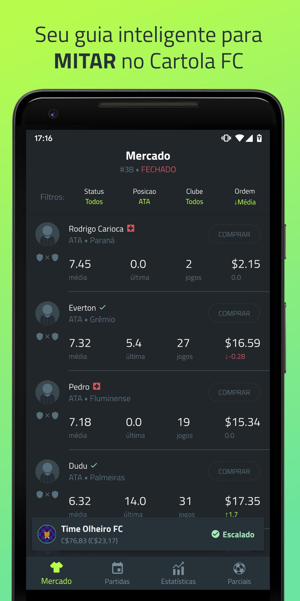 Atenção: Este aplicativo não é filiado ao Cartola FC ou nenhuma entidade relacionada.