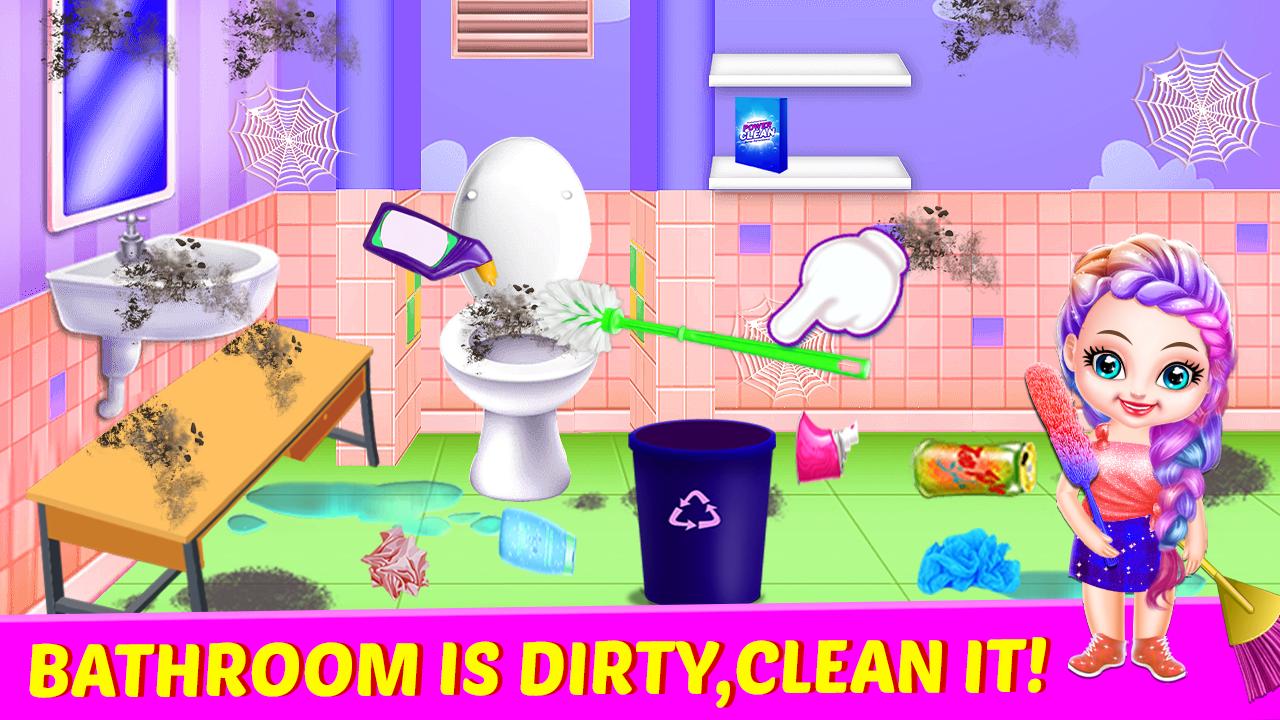 banheiro sempre precisa de mais atenção durante a limpeza em jogos de limpeza de meninas. Você também tem que procurar toda a roupa aqui, colocar todas as roupas na máquina e cuidar da roupa completa. Então você tem que encontrar todas as ferramentas necessárias e colocá-las no armário. As crianças pequenas precisam procurar cômoda e banheira para limpá-la. Você pode alterar os azulejos do banheiro de pisos e paredes. Crianças pré-escolares podem ter muita variedade aqui.