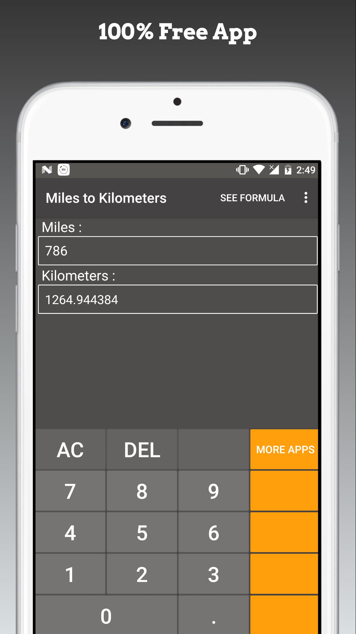 Conversor de Milhas em Quilôme, vindo do desenvolvedor Math Apps, está rodando no sistema Android no passado.