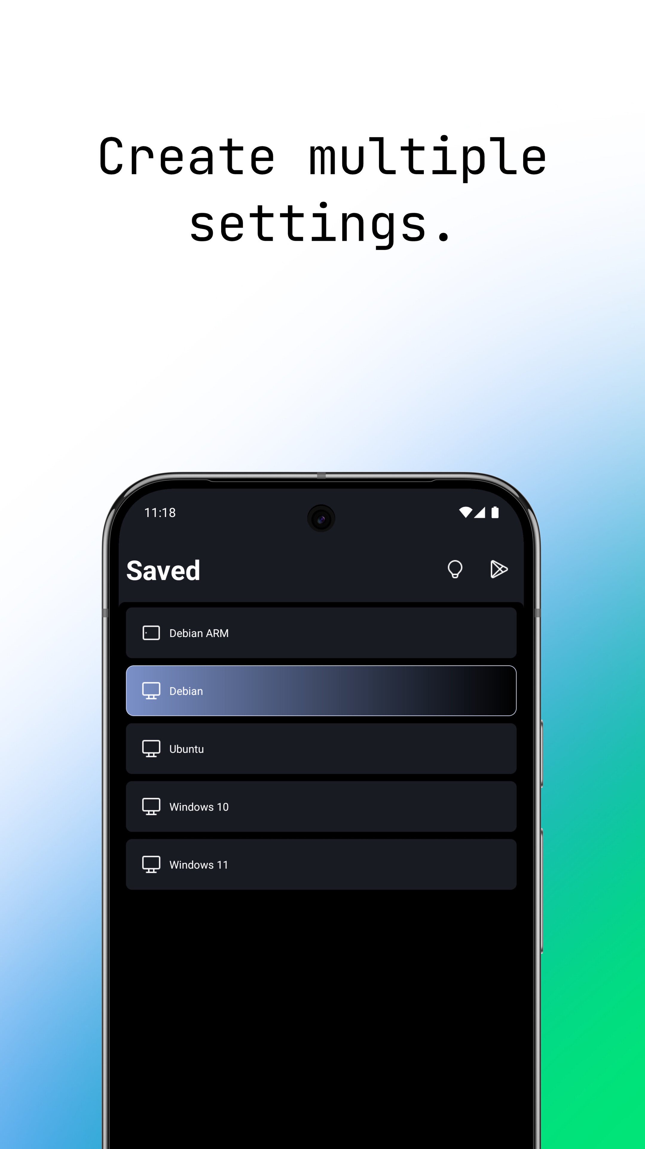 Você pode baixar as configurações disponíveis no aplicativo An Bui no comando Create Qemu x86_64 com apenas um clique e usá-las.