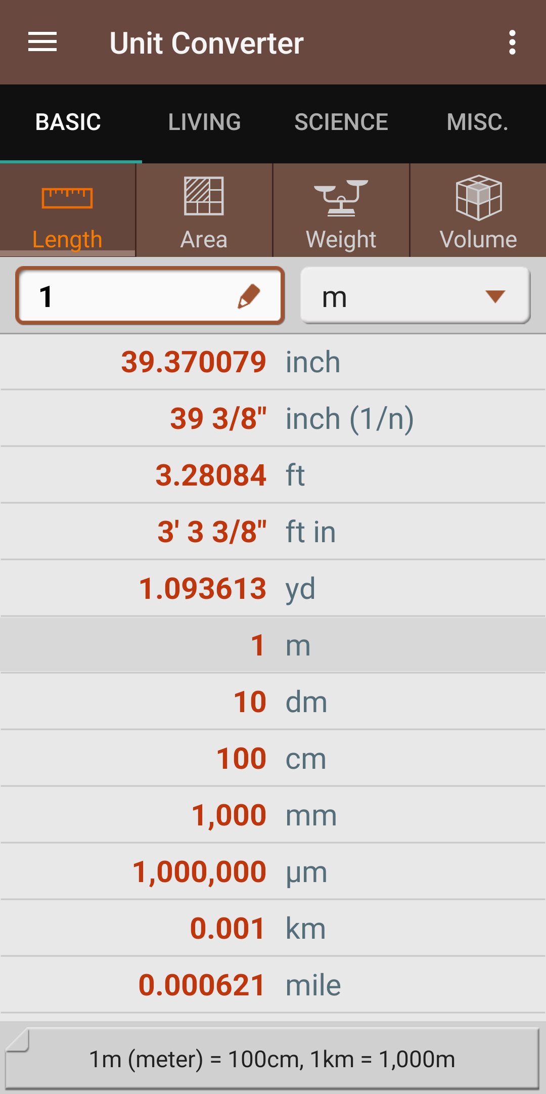 - Básico : comprimento (distância), área, peso (massa), volume (capacidade)