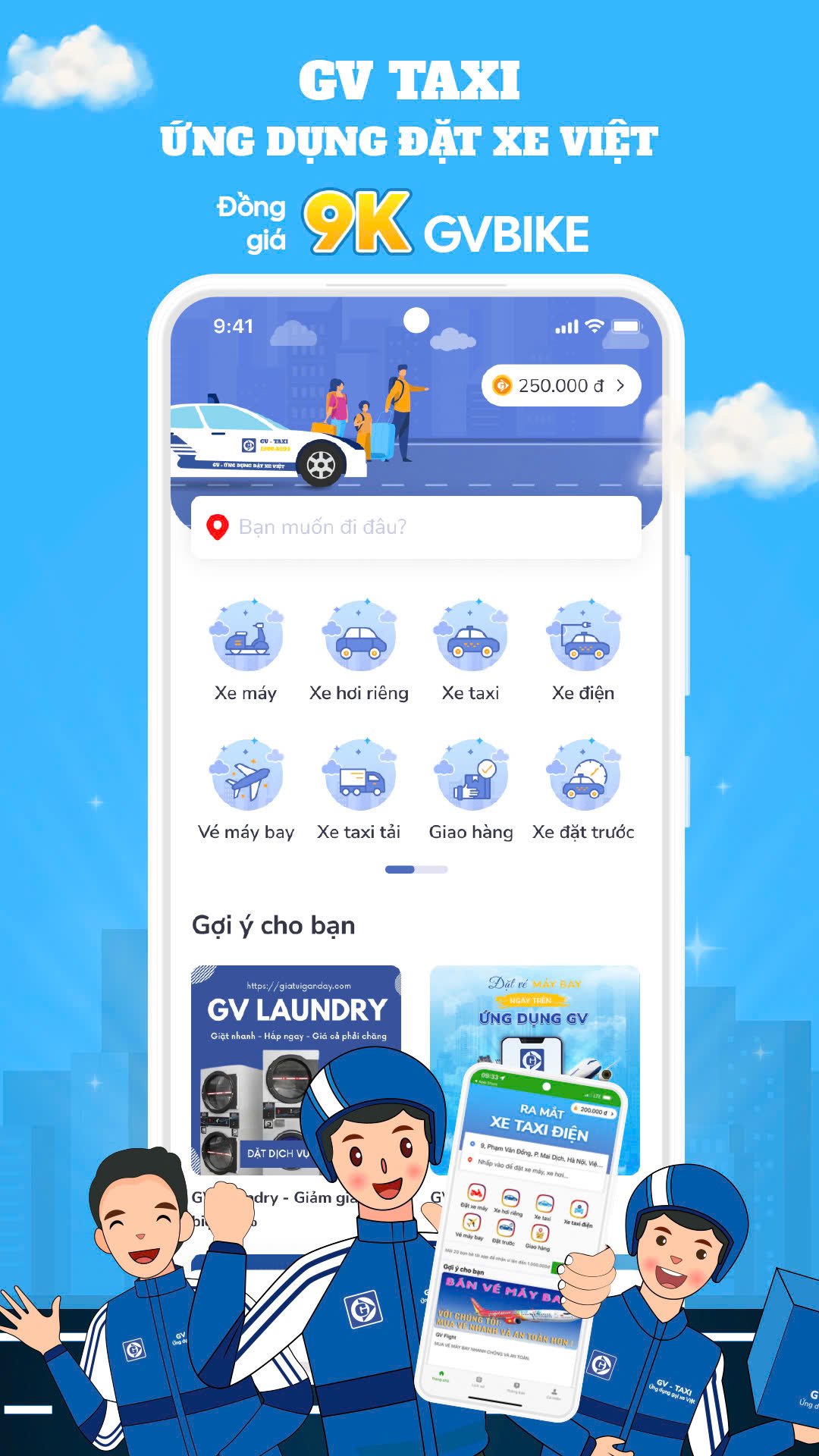 GV pretende se tornar um superaplicativo líder em tecnologia multisserviço para o povo vietnamita. Nós nos conectamos com um grande número de motoristas dedicados e oferecemos uma variedade de serviços de transporte convenientes com apenas alguns toques.