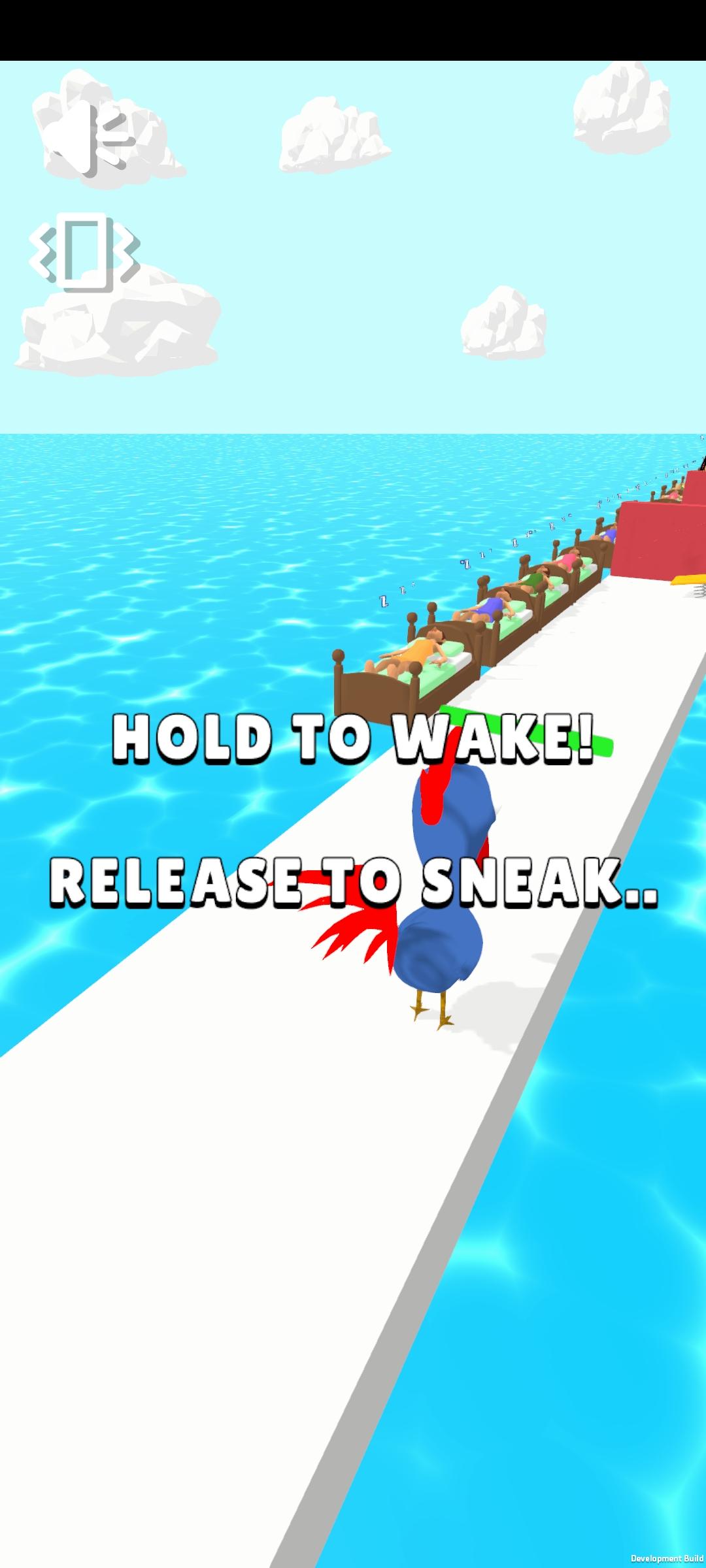 What better wakes a person up than a crazy shouting rooster?! In this simple yet addictive fun game, you try to wake as many people as you can by shouting near them. Just be careful not to wake up the butchers, and watch out for the obstacles! Controls are simple; hold to shout, release to sneak! Have fun :))