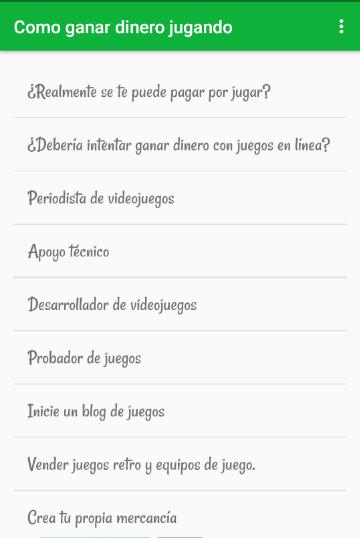 Existen multitud de aplicaciones para ganar dinero jugando online, en nuestra app descubrirás cuales son y de qué tratan. Esto es una guía en la que aprenderás muchos caminos para poder realizar un trabajo que te guste ¿a quién no le gustaría ganar dinero con sólo jugar?