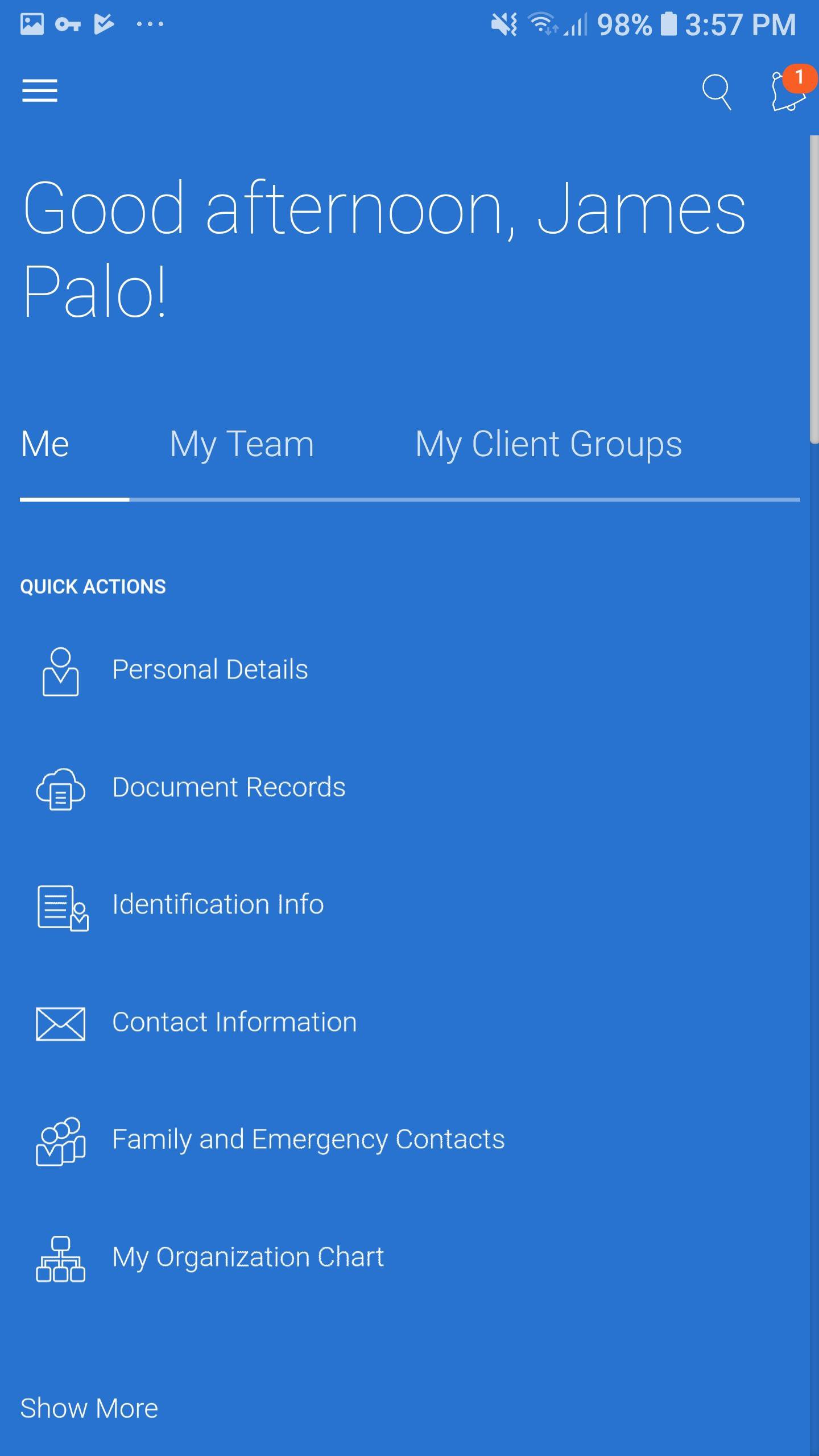 As a new hire, you can view and manage your onboarding tasks before your first day of work. As an employee, you can manage your personal information, view your payslip, manage your goals, view and manage your benefits elections, manage your skills and qualifications, look up colleagues in the directory, and much more. As a manager, you can hire an employee, promote, transfer, change the working hours, and manage salary and compensation of current employees. You can also use My Team to stay informed of your team’s overall employment, compensation, and talent information. All users, can also view their notifications and approve or reject a request from their mobile device using this application.